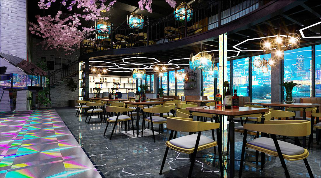 燈光方面,音樂主題餐廳的在燈光設計上比起一般餐廳設計更為重要。在設計上需要將音樂、燈光、以及周邊環境等多方面相結合,當歌手在演唱時,要配合好燈光效果,讓每個角落都能感受到演唱者的表演,并且根據不同的音樂類型采用不同種風格的燈光來配合。然而在燈光照射這點有一個很重要的細節一定要注意,那就是當演出開始時,舞臺需要五顏六色的強光來突出,但這些燈光絕對不要影響到顧客餐桌上的光線,尤其是以燒烤、火鍋尤為注意,一旦光線影響到了顧客判斷食物的生熟程度,導致顧客食用后鬧肚子,那么顧客一定就會把責任怪在了餐廳的食物新鮮程度上,從而不再光顧。