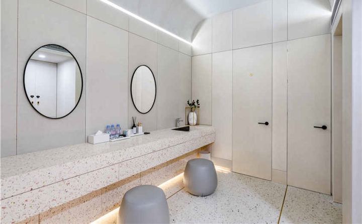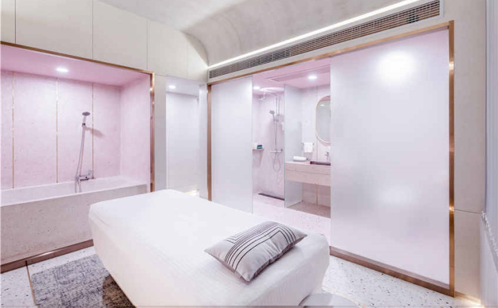 設計師考慮到SPA是指利用水資源結合沐浴、按摩、涂抹保養品和香熏來促進新陳代謝,滿足人體視覺、味覺、觸覺、嗅覺和思考達到一種身心暢快的享受,所以其裝修設計必須排水非常好,而且裝飾的時候不僅要考慮到實際的享受,視覺上的享受也是非常重要的。