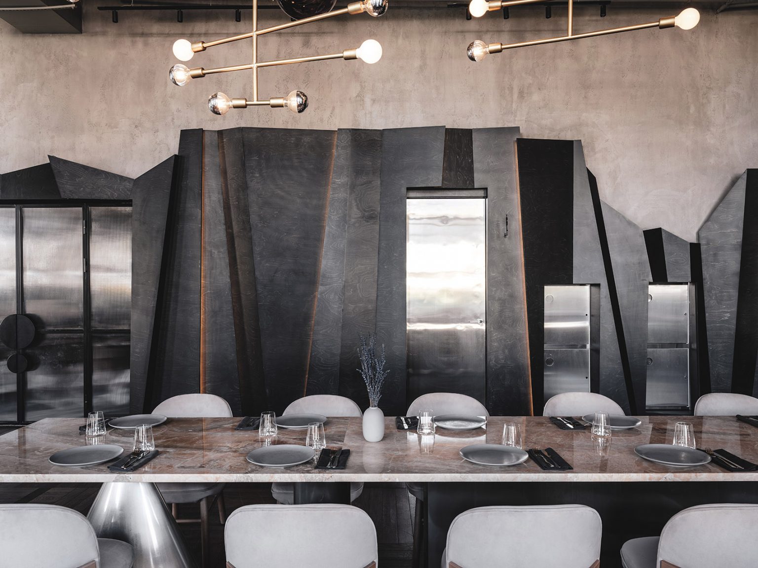 常常出現在好萊塢新世界電影中的銀色火星女神也以雕像的形式被設置在餐廳入口對稱的柱子上。“我們想要將能量、速度、力量與熱情傳達給客人,給他們一次體驗不同情緒的機會。”