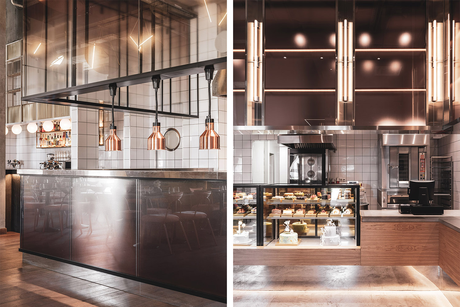 “在餐廳開闊的空間中,有著高挑的天花板和大型窗戶。太空時代的美學給了我們很大的啟發,因此,選用清晰而不同尋常的幾何形狀來展現空間便成為了本次項目的重要設計理念。”空間的最終呈現效果是意義非凡、時尚感十足且帶有幾分諷刺意味的。充滿儀式感的內飾并不是為了給人以壓迫感,相反,它們可以給予顧客靈感,指引賓朋張開想象的翅膀。