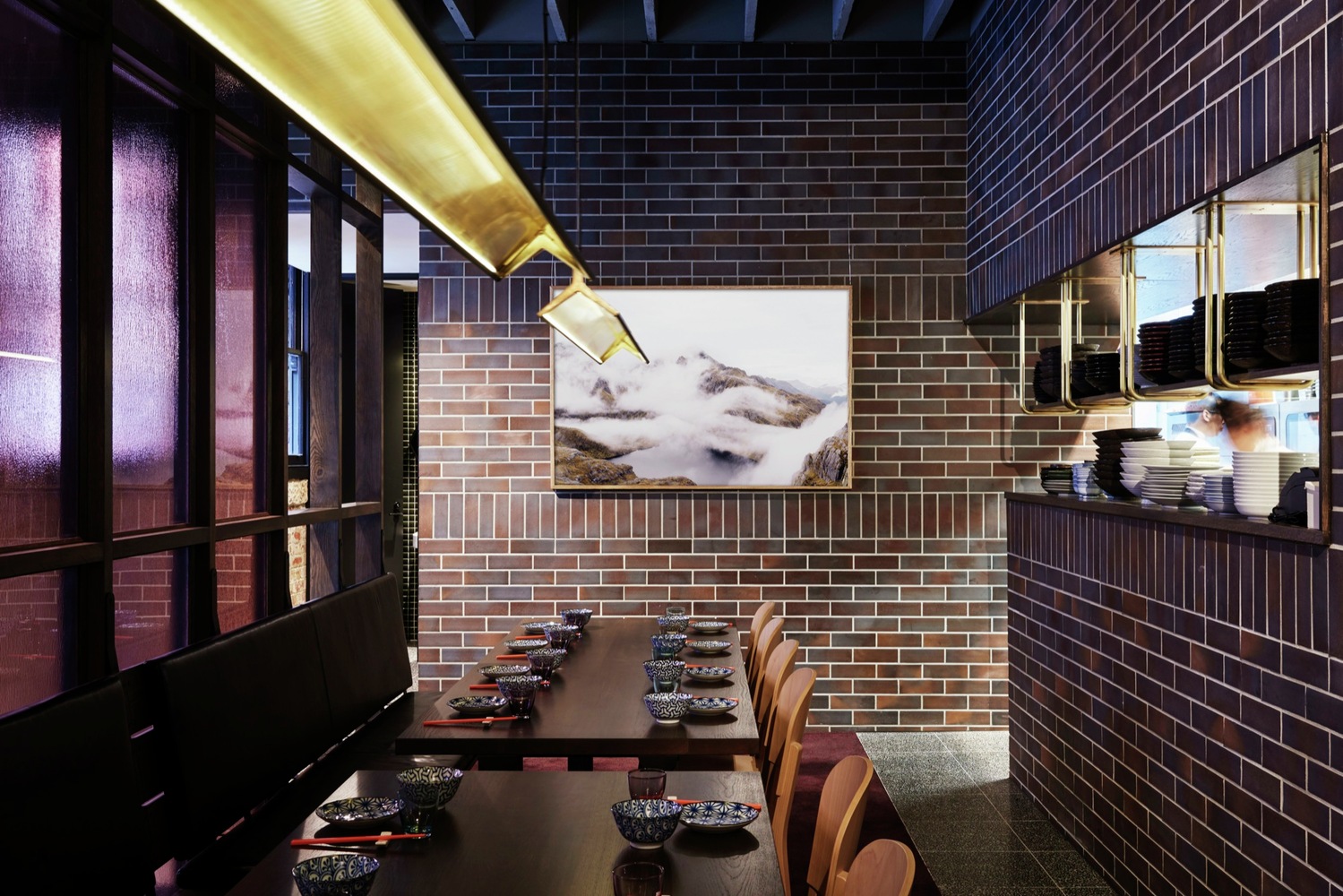 原有的建筑物被剝離露出堅固的木桁架和原始磚砌,現有的木屋天花板結構保持完整,木地板也被保留,修理并染色,以配合其他使用的表面處理。懸臂式的宴會座椅為小空間增添了輕盈感,中式的木材和玻璃隔斷作為房間分隔,為主口附近提供了實用的解決方案。
