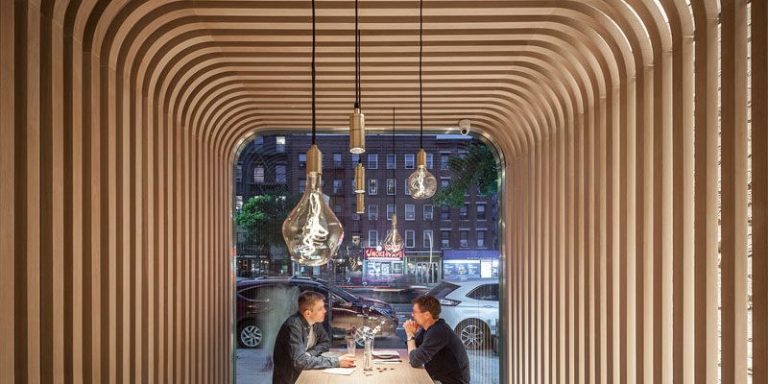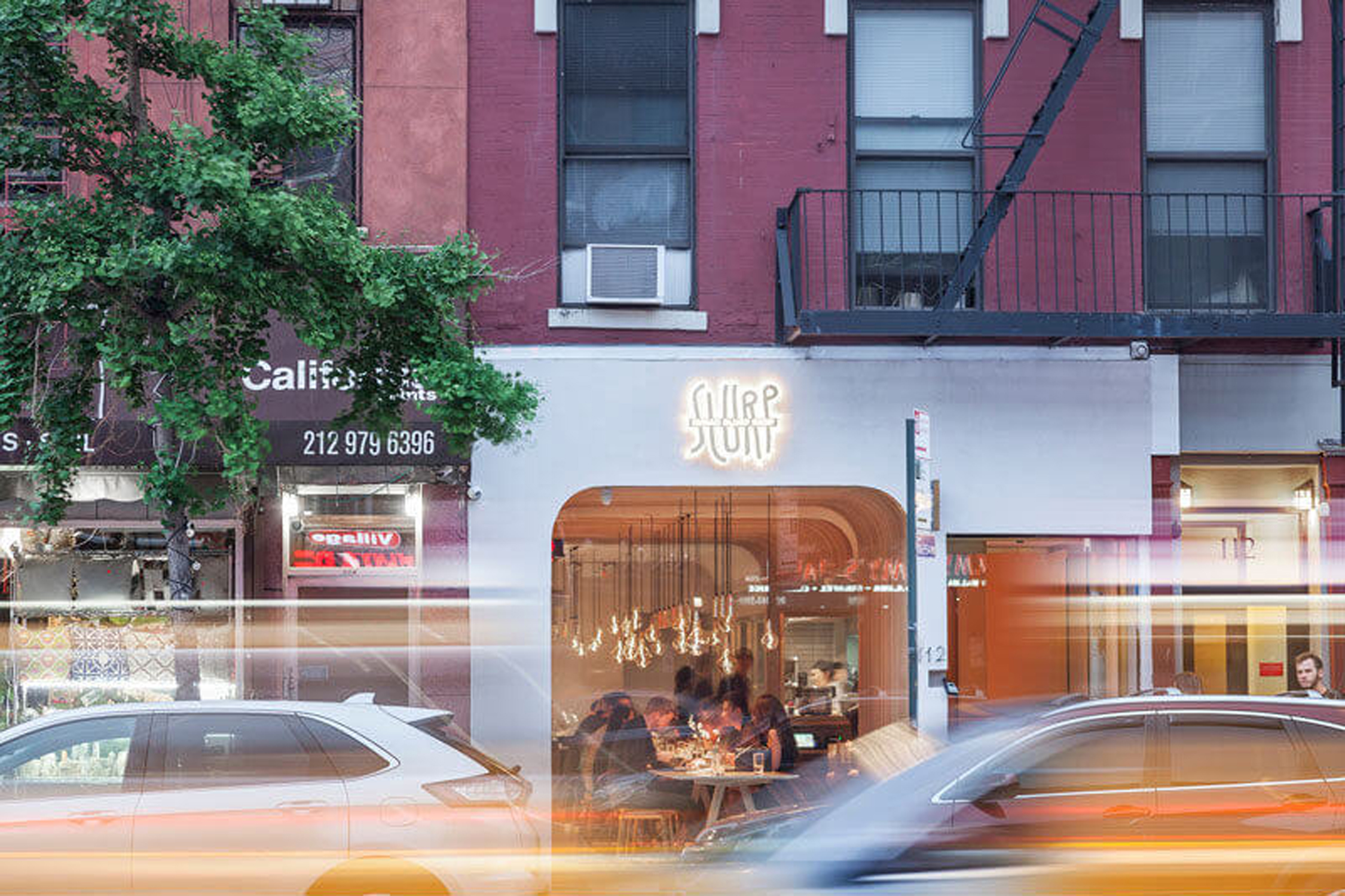 New Practice Studio最近完成了位于紐約東村附近的一家創(chuàng)意餐飲空間設(shè)計,Hunan Slurp是一家以正宗的湘菜為特色的餐館。設(shè)計師想要創(chuàng)造一個與東村熙熙攘攘的社區(qū)相結(jié)合的用餐區(qū),這個空間被設(shè)想為一個可以瞭望和觀察的地方,設(shè)計師從街邊切開一個帶圓角的體量,它從店面延續(xù)到室內(nèi),從而在街道和餐廳之間建立直接對話。