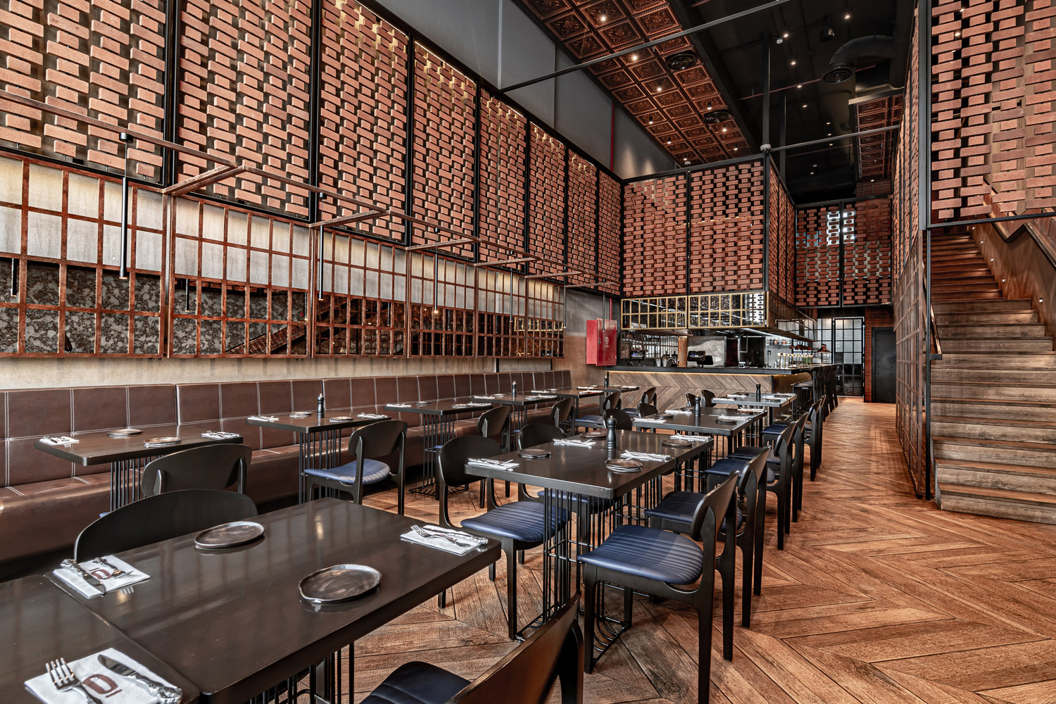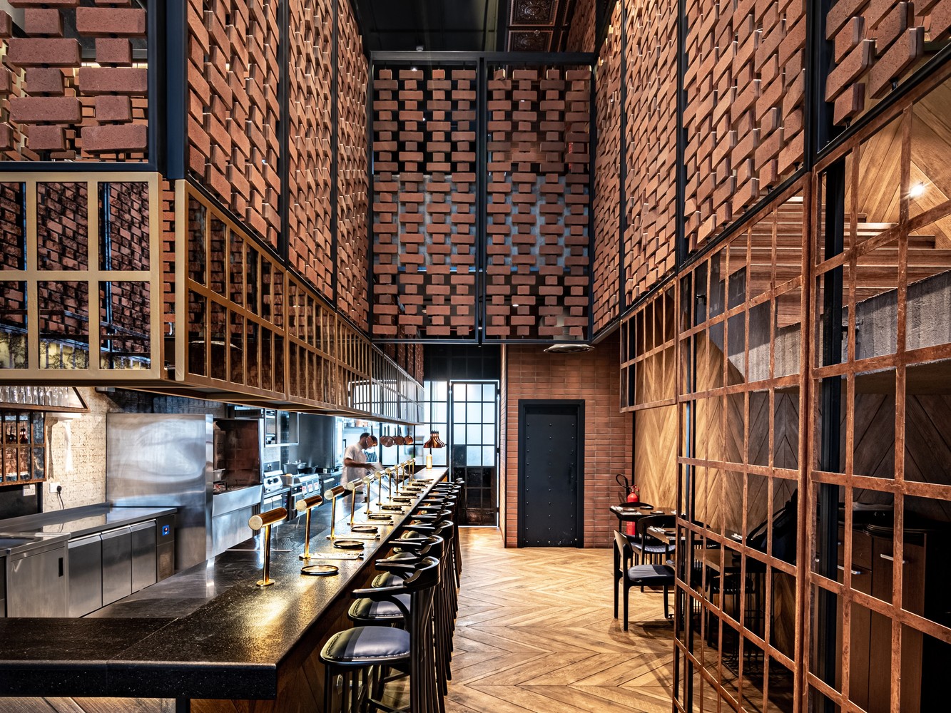 一個典型的傳統倫敦小酒館,酒吧美學的想法是我們客戶的前提。為了做到這一點,本案高檔西餐廳設計的設計師在尋找傳統英國酒館精神的概念時,既不投入典型資源,也不會失去對具有當代藝術氣息的經典歐洲餐廳的關注。外墻具有相同的分布式玻璃結構系統和開放式磚墻,其組成與雙門通道結合在一起。