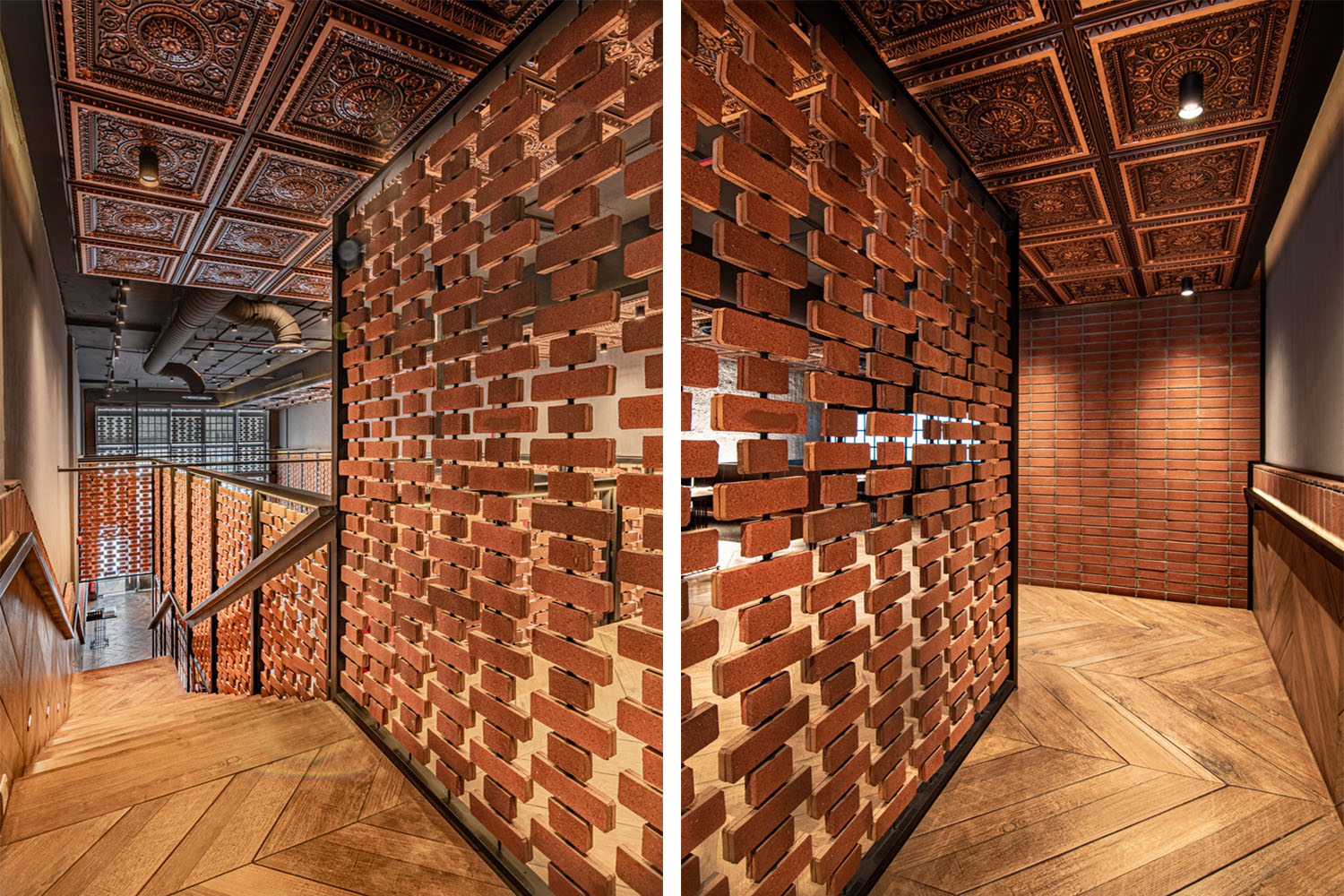 空間主材:鐵藝、木地板、陶土磚、古銅、仿古鏡、肌理涂料