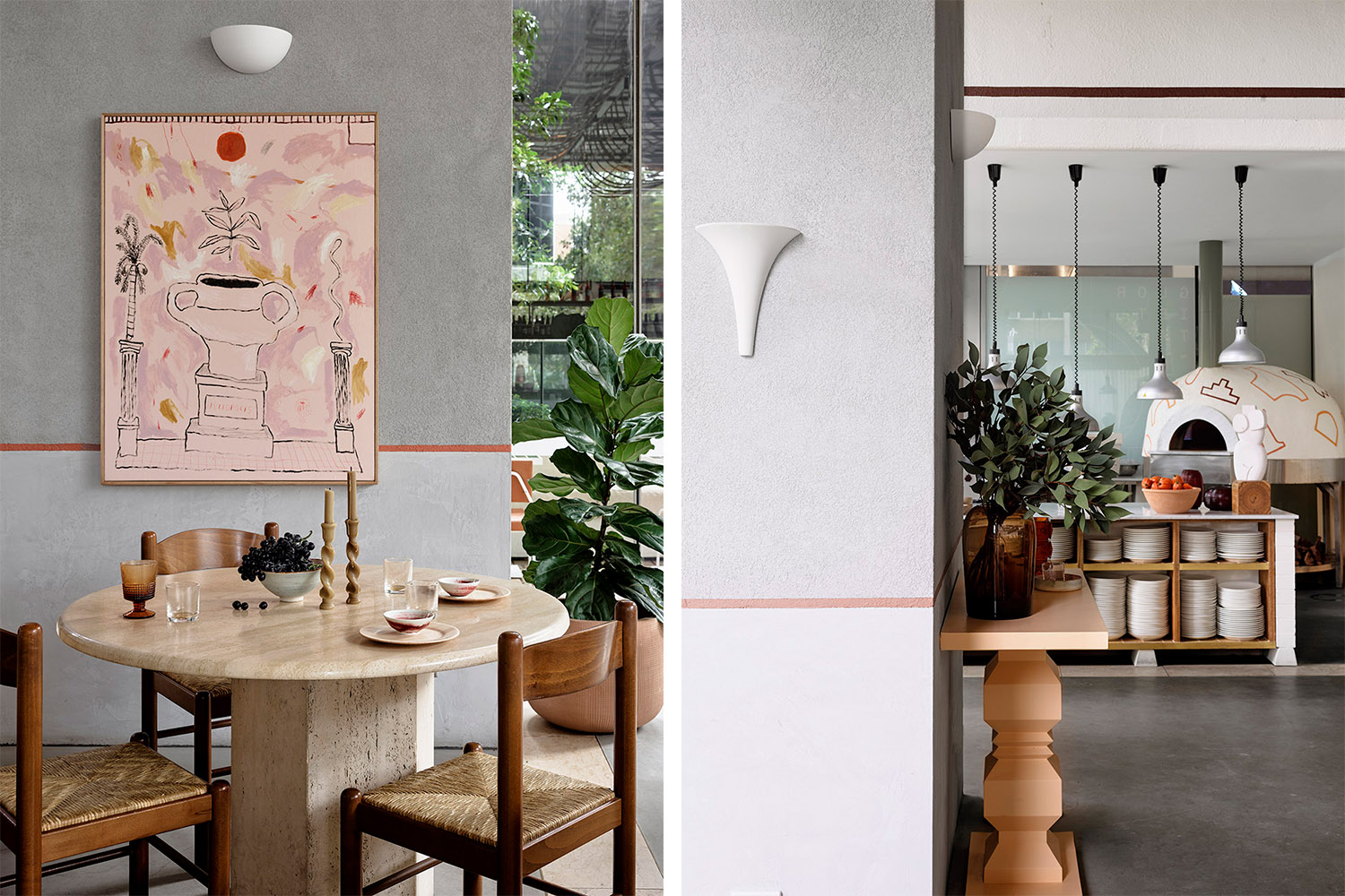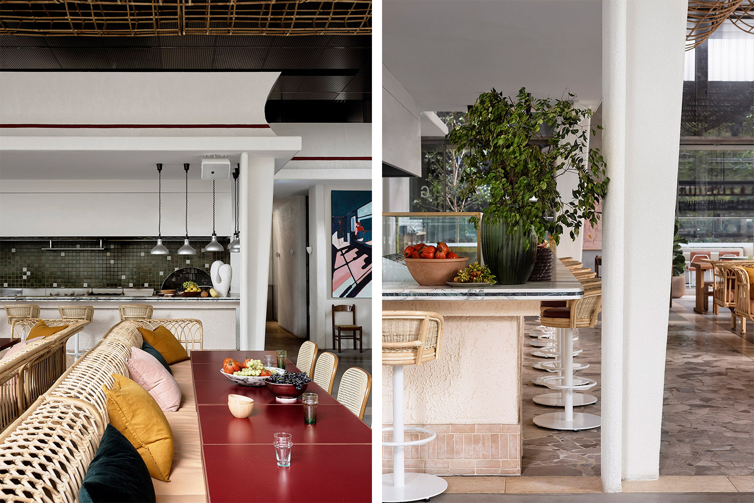 Glorietta餐廳的空間敘事展現了一種柔軟的農業懷舊氣息,以極其自然的方式改變了單調而冷峻的商業體量。如今的Glorietta餐廳成為了具有親和力的目的地,客人們既可以在這里小酌一杯,輕松地吃吃披薩,也可以享受一頓正式的深夜晚餐。