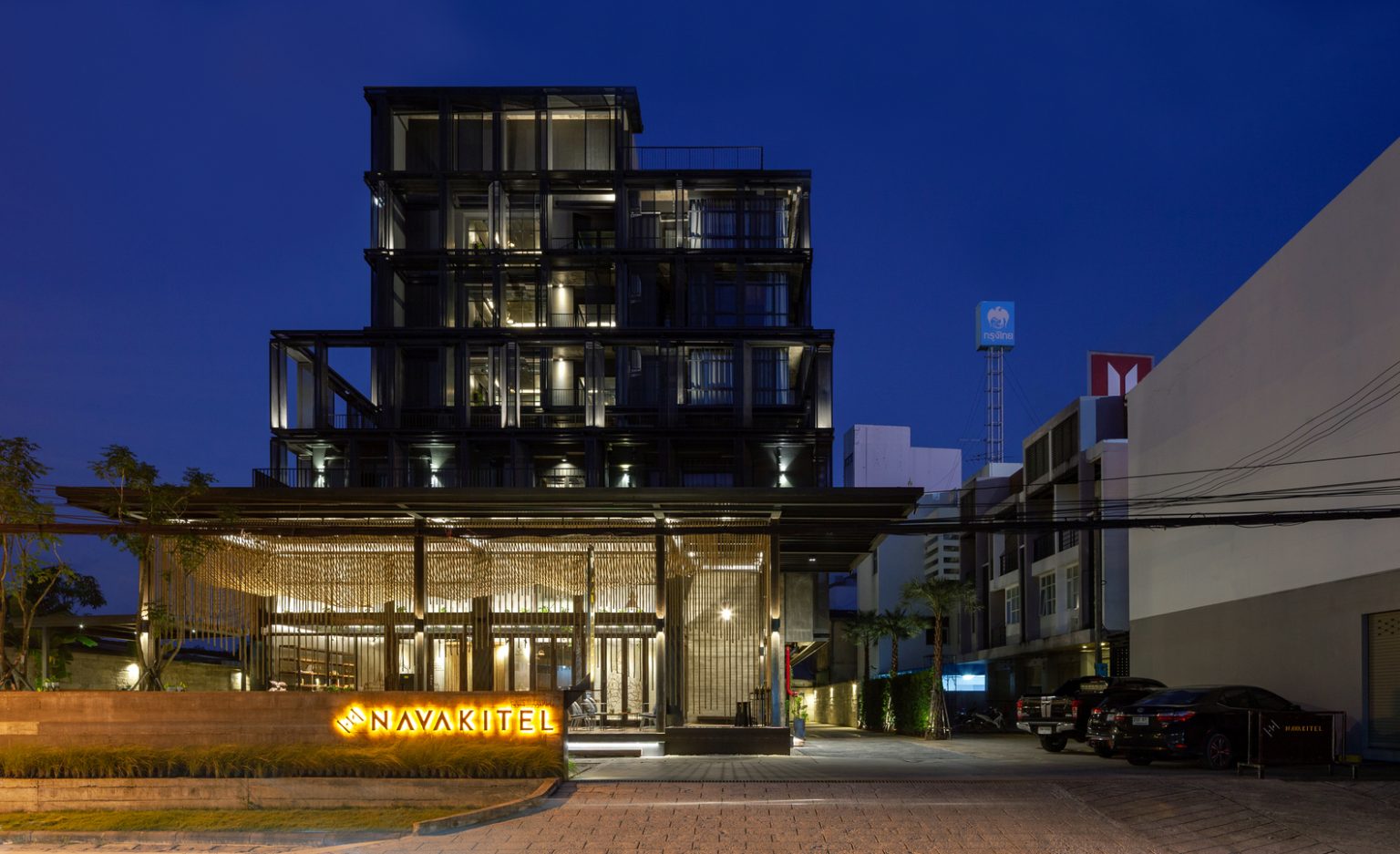 Navakitel設計酒店位于泰國南部最古老的城市之一那空是貪瑪叻(Nakhon Si Thammarat)的核心位置,被商店和住宅所包圍。 這家酒店包括68個住宿單元,位于一樓的大堂和位于三樓、用于組織酒店活動的開放式露臺。Navakitel設計酒店充分利用了當地的工藝,包括鐵匠、木匠與泥瓦匠的技藝,將其應用在建筑與室內設計之中,通過酒店設計展現了那空是貪瑪叻的本土特色。