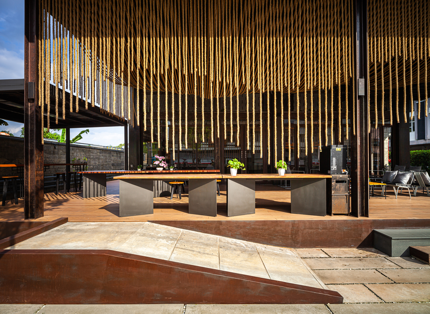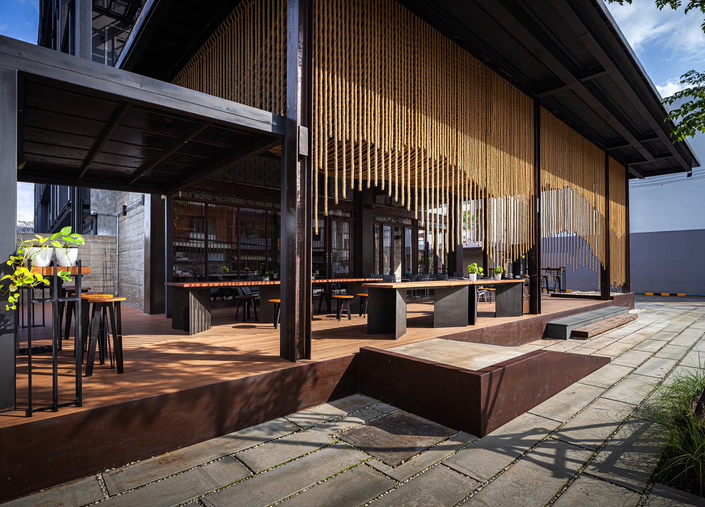 空間主材:工字鋼、沖孔鋼板、銹蝕鋼板、實木、混凝土、木地板、麻繩