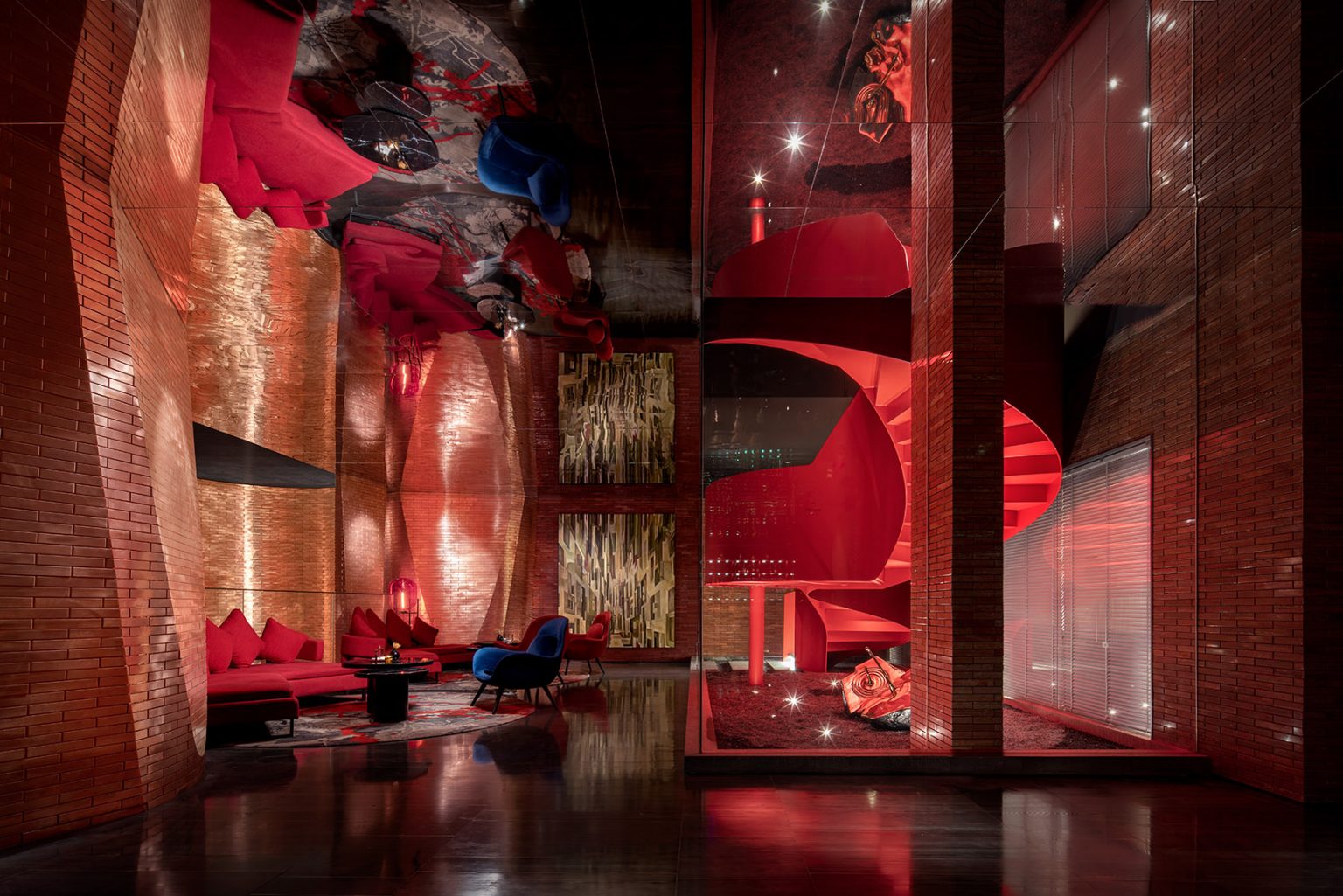 西安 LINOW HOTEL & BAR 采用古都的城墻磚作為融合 “古” 與 “新” 的關鍵設計元素,在材料、顏色、輪廓、線條乃至堆疊尺度上全面創新,創造獨特、強烈而夸張的空間感受。這成為一個嶄新的容器,包納了多功能的現代生活場景。我們真正感興趣的是如何在一個空間的特質中去感知另外一個空間,這就像是觀望一個正在觀望的人。 當把客觀性剔除后,反而能獲得一種新的客觀, 正如你用視野去探量一個空間。