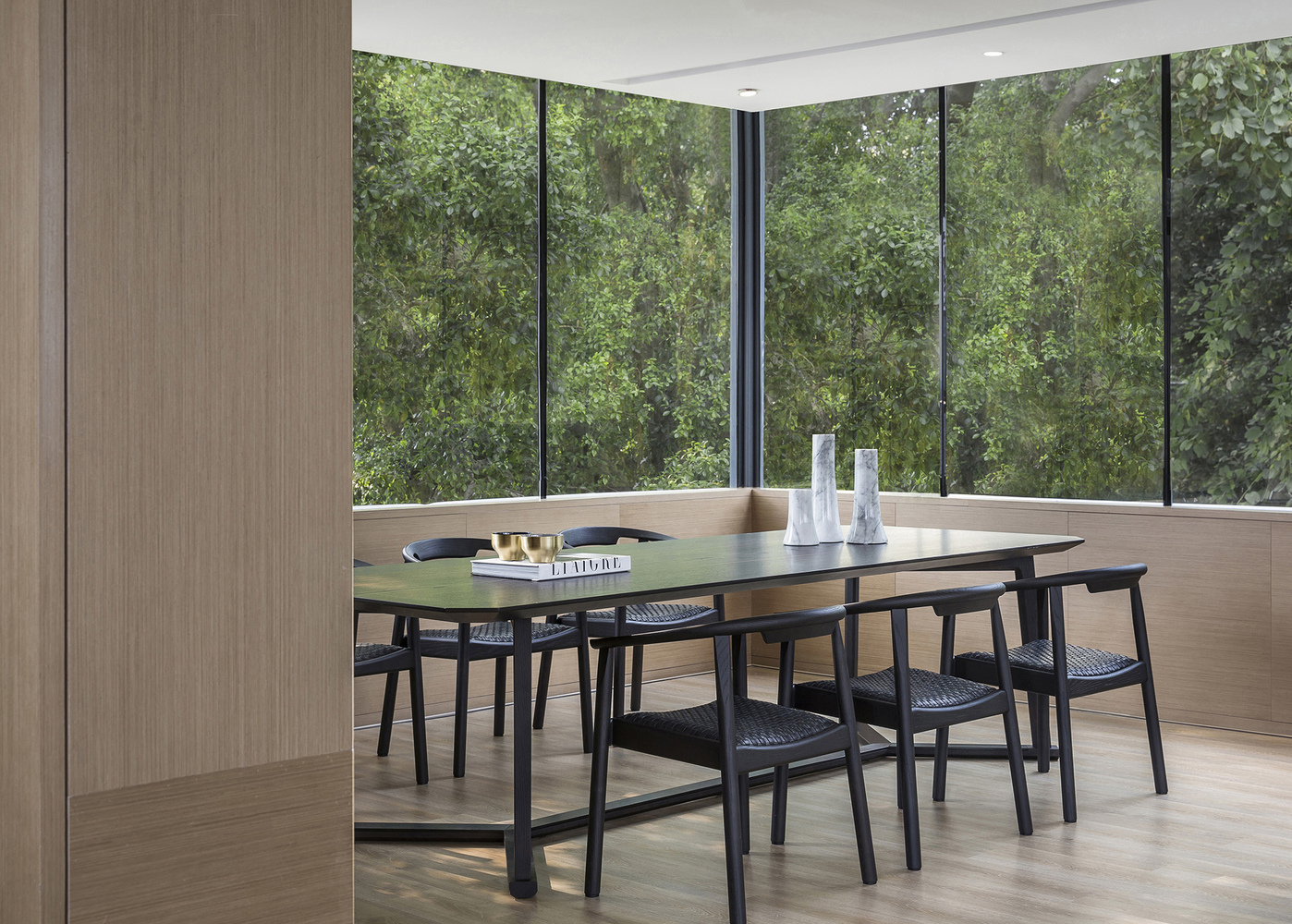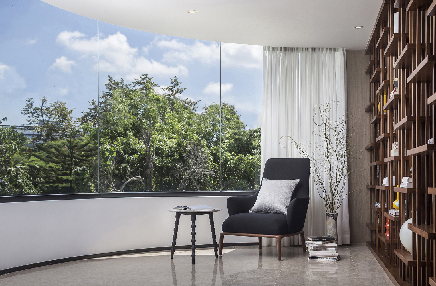 東方花園是深圳最早的別墅區,位于華僑城,它見證了深圳30年的發展歷程,密度較低,綠化率高,有著大隱隱于市的感覺。共向的設計師一直生活和工作在這個區域,對該項目有著特殊的情感,結合東方情境與當代設計,將舊宅改造為會所空間,空間的環境,光線,氣質,讓人有安靜感,鬧市中的“靜”正是空間的表達??臻g中的慢生活方式在城市的快節奏下扎下了根,這里有寬敞的大空間,通透的綠色。