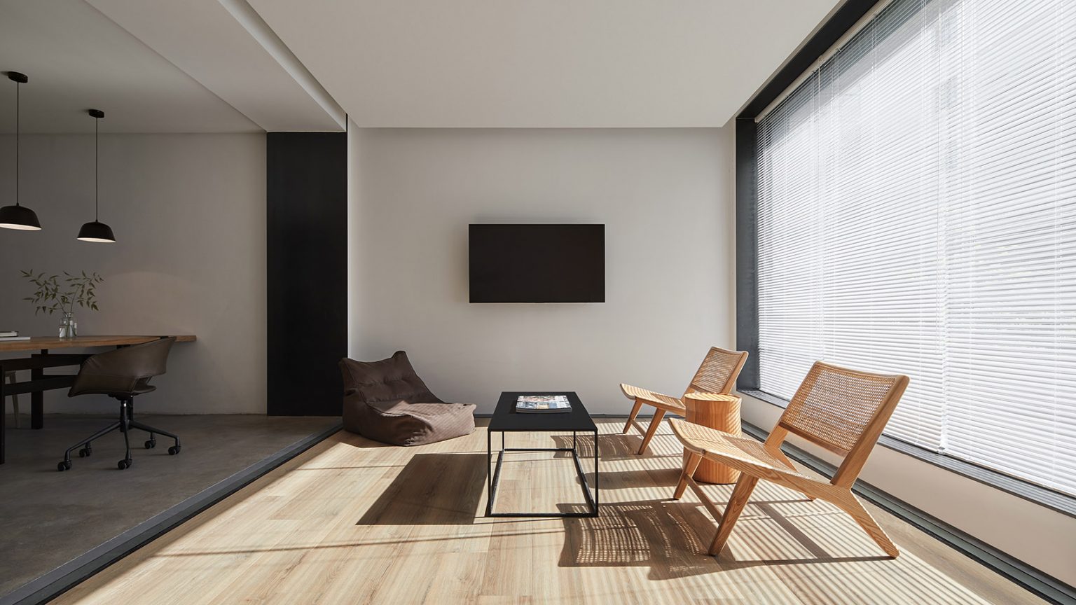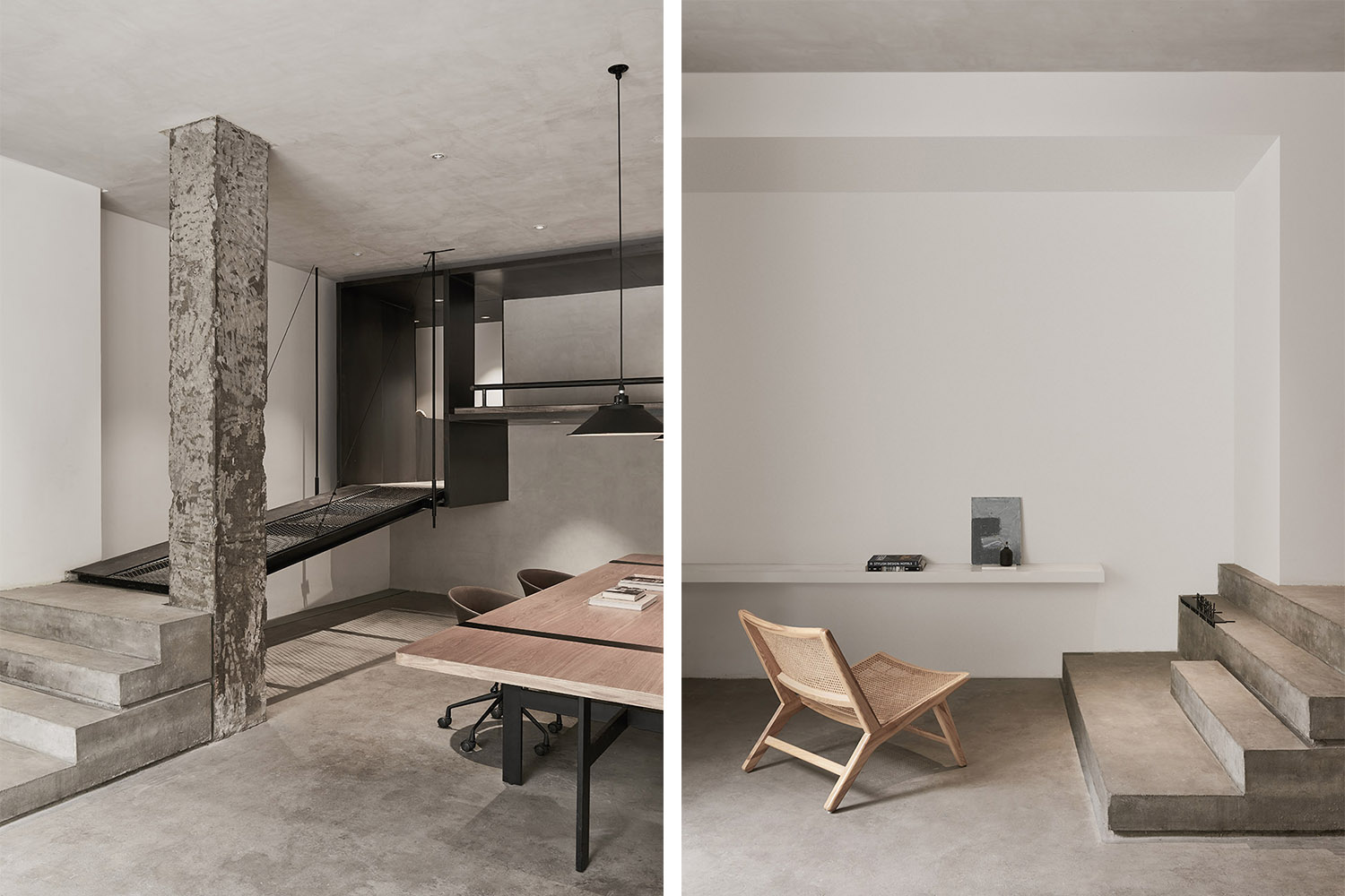 空間主材:木材、鋼材、混凝土、玻璃、肌理涂料