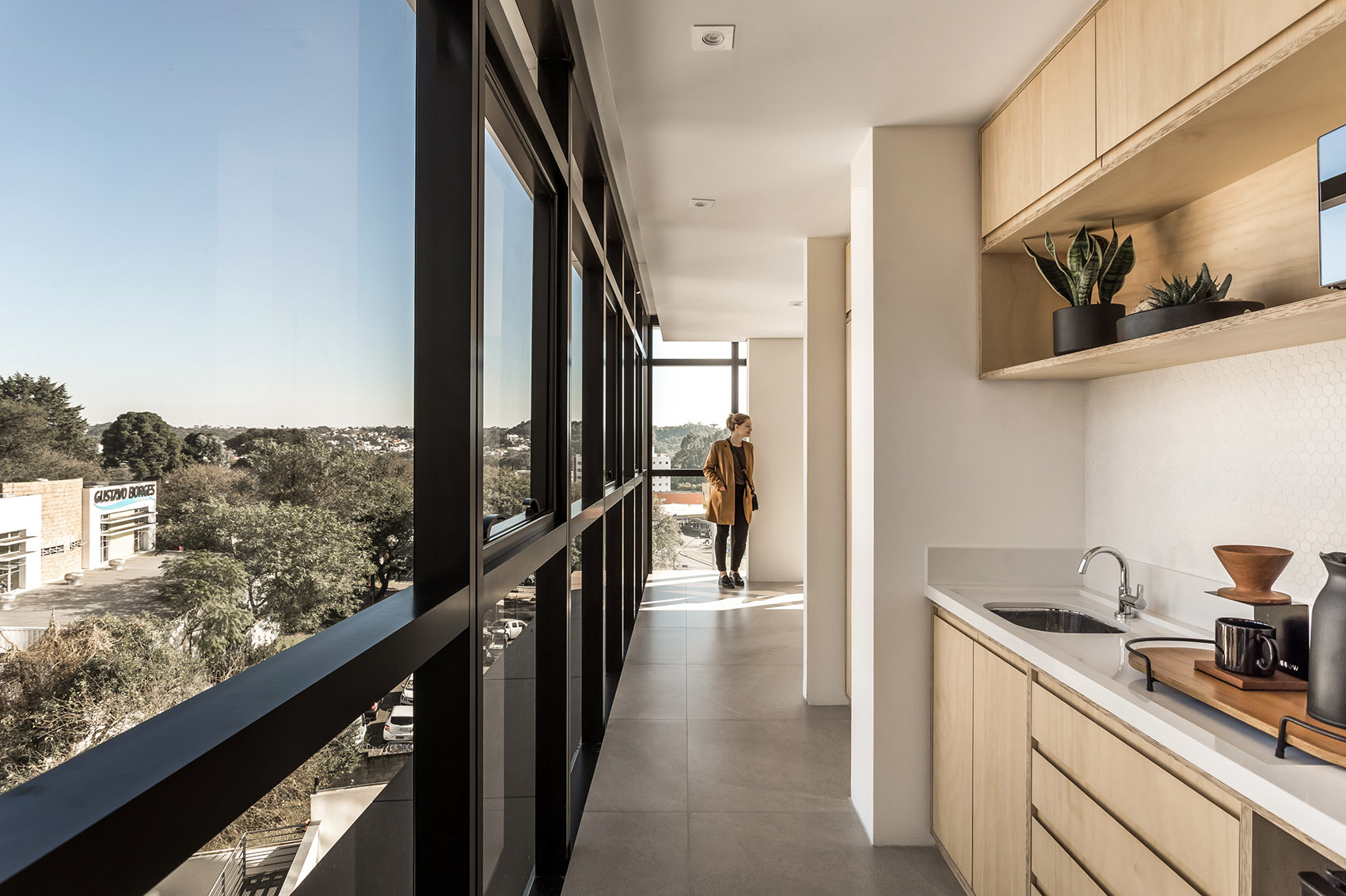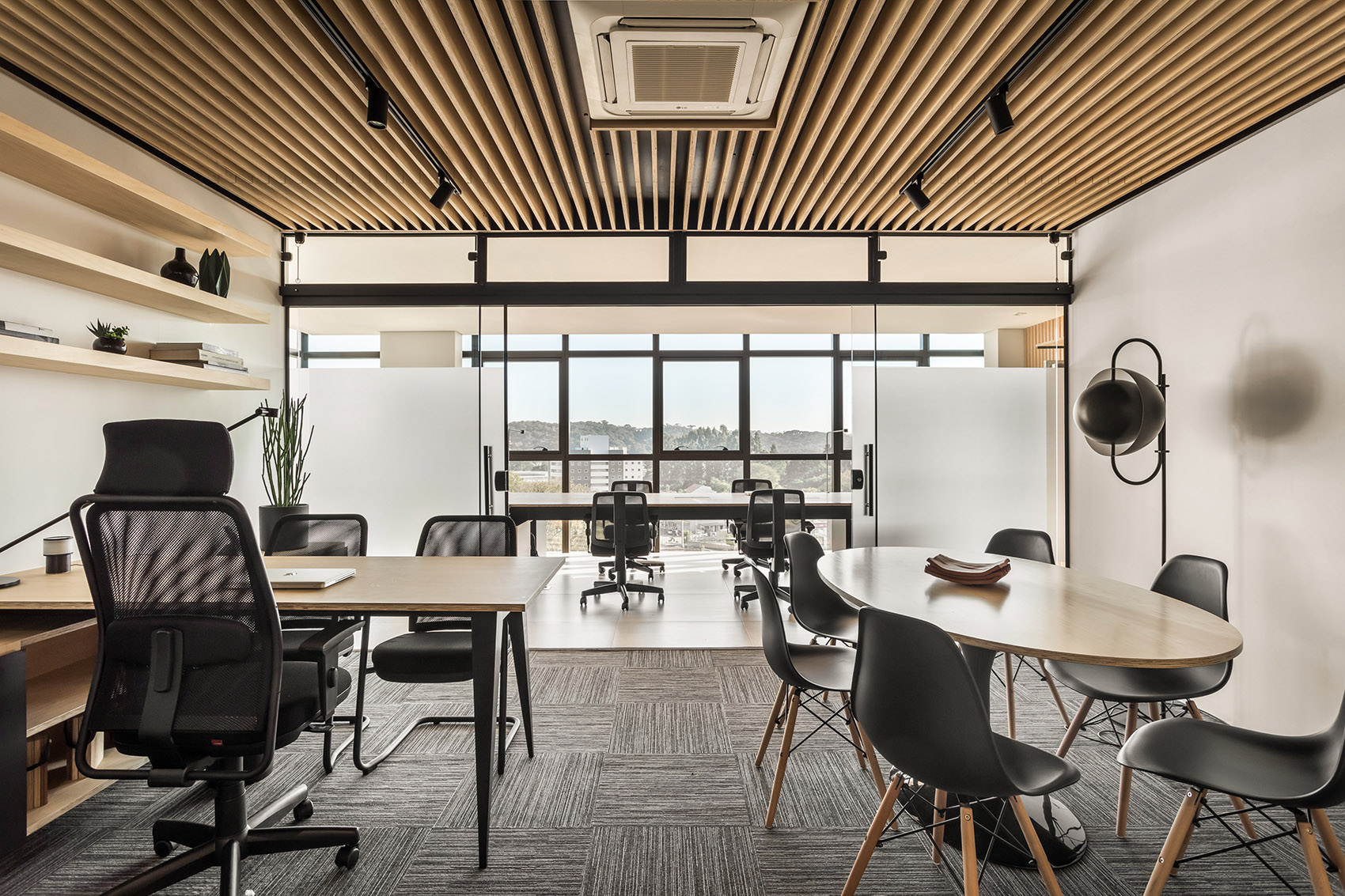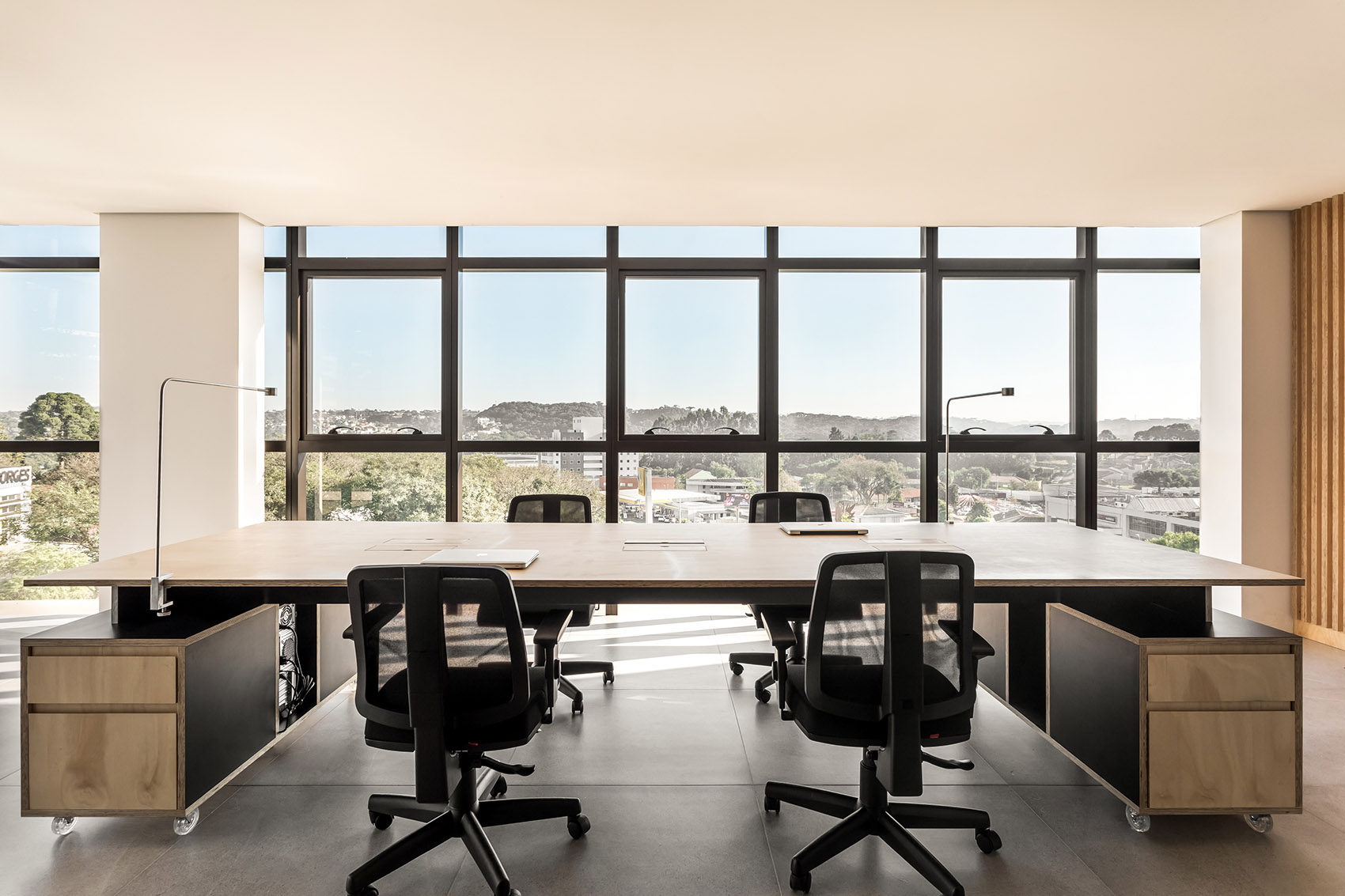 該項目旨在為巴西庫里蒂巴的木材公司Frank Madeiras重新整合辦公空間,使其在提供必要辦公環境的同時,還可作為展示間使用,以便接待客戶和相關各方。項目所在的場地擁有朝向Barigui公園(庫里蒂巴市最大公園之一)的壯觀視野,因此設計團隊試圖通過自由平面的功能布局來發揮這一優勢。