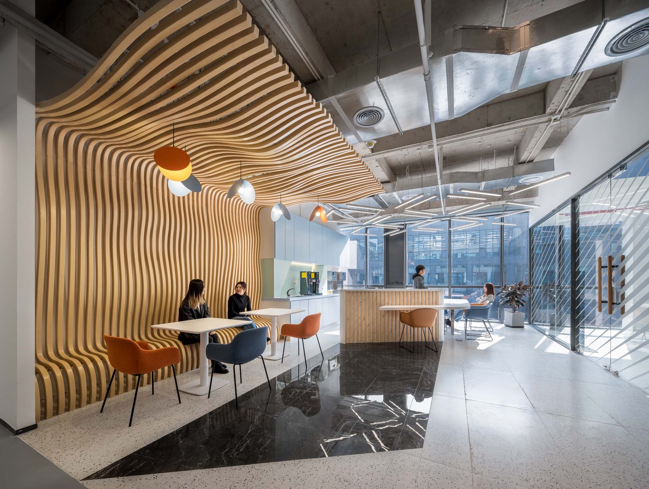 如同城市生態(tài),辦公空間亦成為交流互動的樞紐中心,移除大多數(shù)中國典型辦公室的正式和過時的模式特征,設(shè)計師創(chuàng)造了可滿足當(dāng)代員工的需求的現(xiàn)代、創(chuàng)新和舒適的工作空間。這個開放的空間使人們可以在不斷進(jìn)化的組織環(huán)境中擔(dān)當(dāng)多種角色,為員工提供更多的自我管理權(quán)限,并方便員工們以一種更適合他們的工作方式來完成工作。