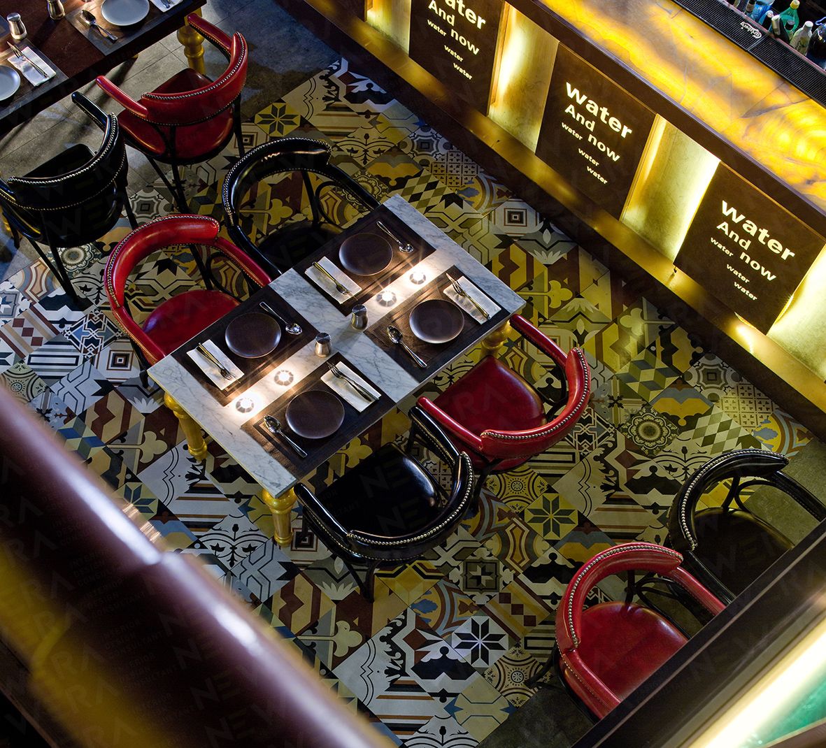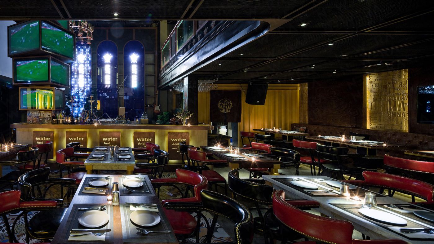 這里的餐飲空間設(shè)計(jì)非常逼真,踏進(jìn)酒吧內(nèi)部仿佛來到了歐洲的百年小酒館,集裝箱疊錯(cuò)式外觀、仿古青磚、鏤空雕刻版與黑白鐵藝墻營造了年代的文化氛圍,像是一場藝術(shù)文化的視覺展覽。錯(cuò)落有秩的金屬感賦予空間年輕時(shí)髦的氛圍。