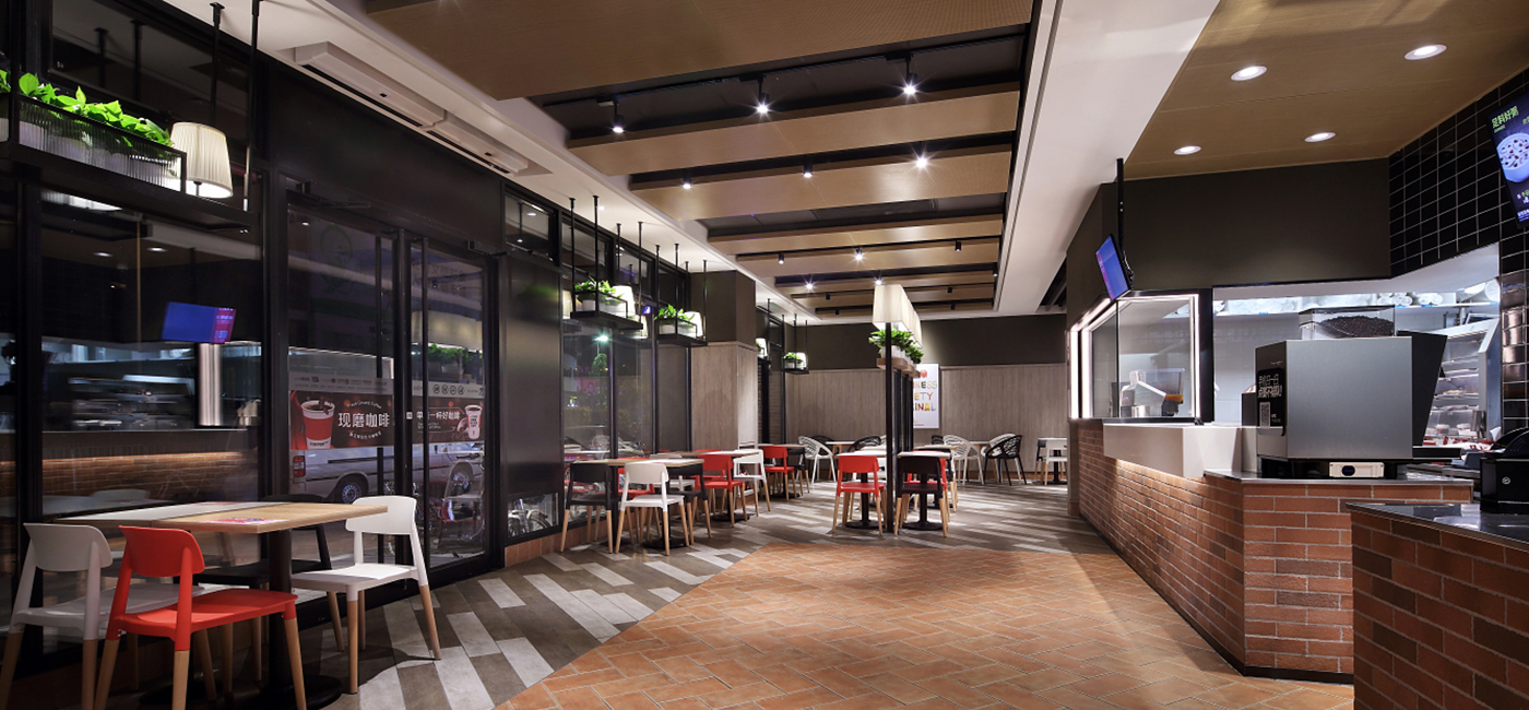 肯德基是全球著名的連鎖快餐品牌,紅色是肯德基的品牌標志色,而本案整體以灰色調為主,輔以品牌紅,自然的體現(xiàn)了簡約和復古完美結合的風格,也造出輕松愉悅的用餐氛圍。