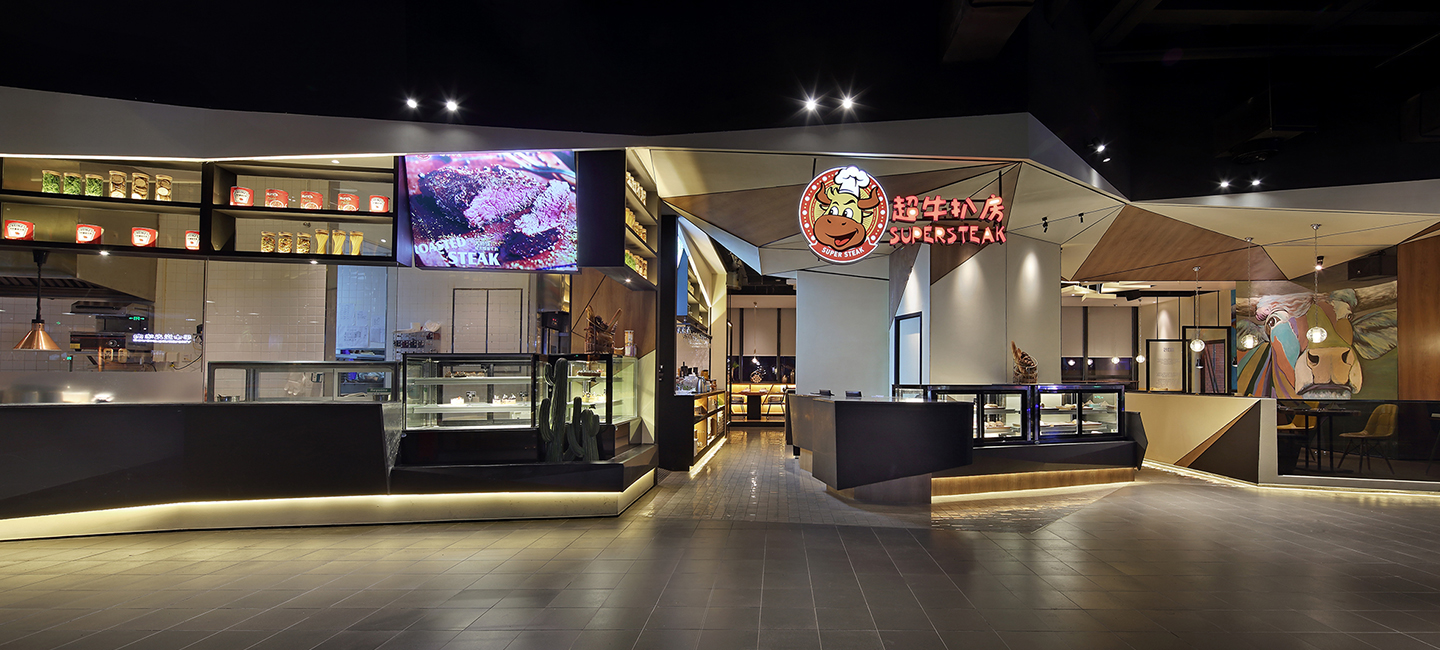 走進餐廳,首先映入眼簾的是造型獨特的外立面及一個開闊的用餐空間,地面燈帶的運用,仿佛把整個餐廳托起來,在商場里像一個藝術品一樣被呈現。開放式的用餐區讓空間更具有展示性及互動性,這里能看到窗外來往的人群,正對著窗外商場舉辦活動的地點,吸引人流量,也增加了內外空間的互動性,同樣為食客提供一個視野更加開闊和放松的用餐環境。