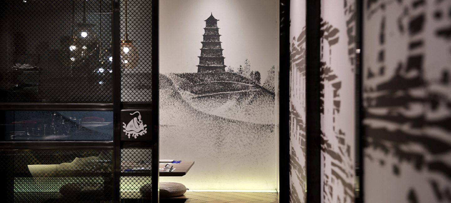 每一座城,自有一種歷史沉淀的氣質。貝帝設計,洞悉進入每一個城市文化語境的密碼。關中自古帝王都,意氣風發(fā)長安城。歷朝歷代的西安,可謂是“萬國衣冠拜冕旒”的國際大都會。十三朝古都底蘊濃墨重彩,千年文脈宛如滄海游龍,歷經(jīng)滔滔歲月的洗禮,呈現(xiàn)包容海納、氣象萬千的文化魄力。大漁鐵板燒項目以西安地域文化為背景考量,承韻長安古都,接軌當代藝術,于曲江雁塔畔,誠獻一處身心飽食之地,與大西安共饗一場活色生香的盛宴。