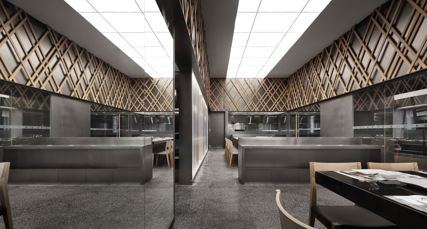 相比全國各地的其他大漁店,深圳中心城的大漁獨樹一幟。本案設計師追溯大漁鐵板燒的歷史,以灰、白、黑、木色等主色調營造出一個日式氛圍空間,給人時尚新潮、簡約素凈的用餐體驗。