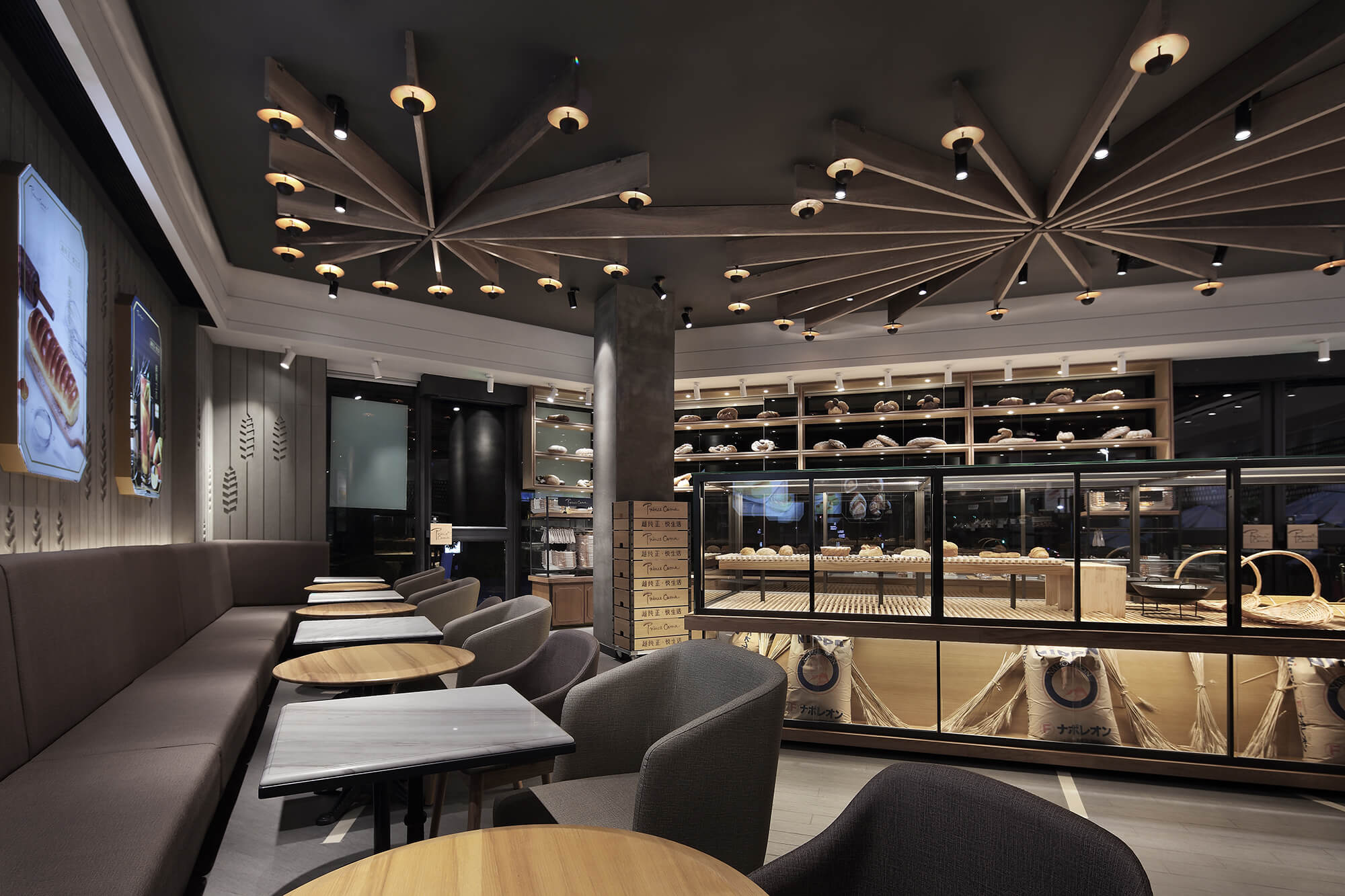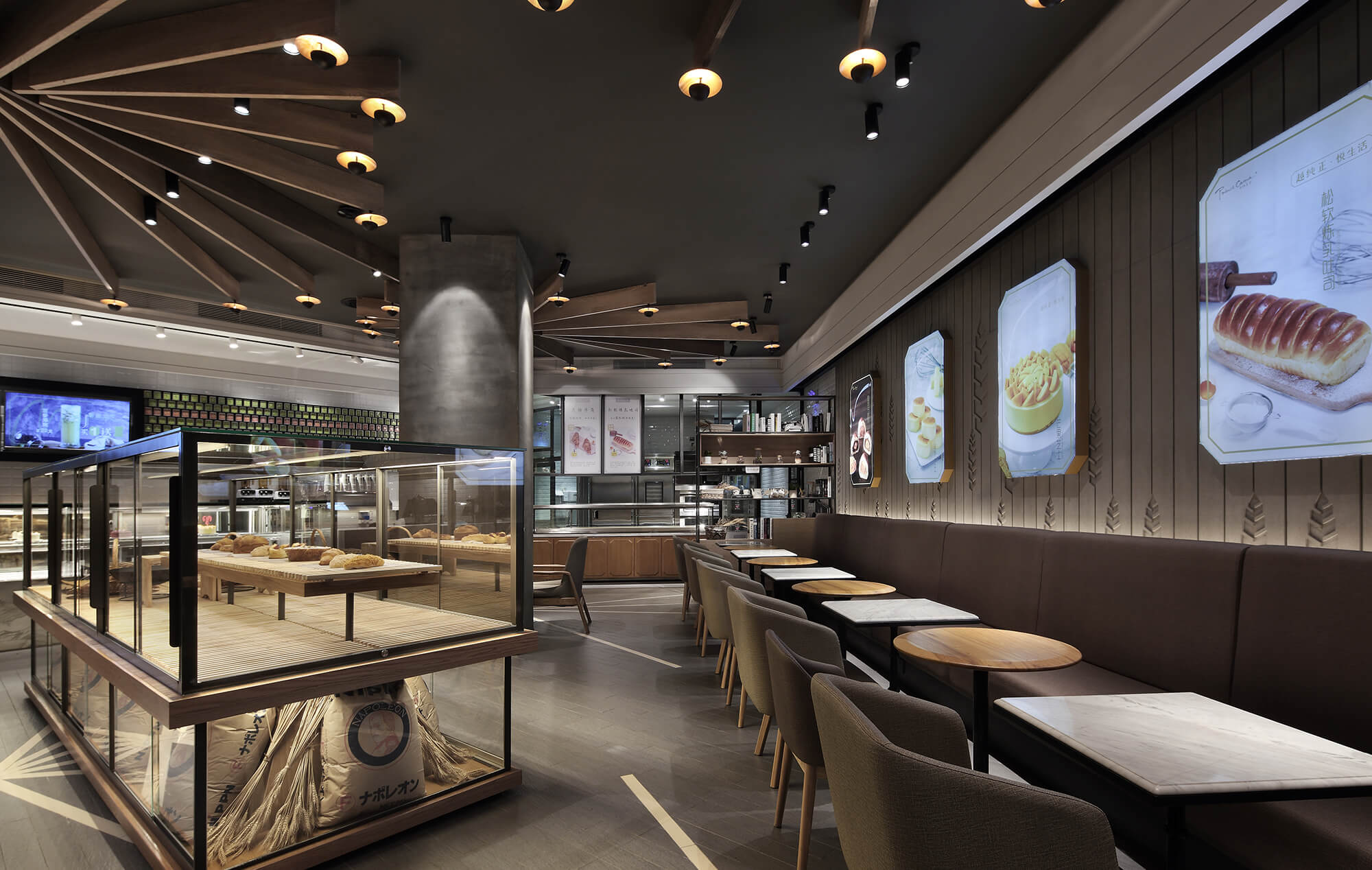 設計師以卡瑪王子品牌形象升級為契機,將設計元素聚焦于產品本身以及產品引申而來的符號,在休閑餐飲空間設計中,設計師靈活解構面包的前世今生,將制作面包的原材料“小麥” 引入空間,發揮想象力將“麥穗”與“麥稈”的形象多樣化、豐富化、通過拆分整體、提煉細節,真正做到一麥多用,整個空間充滿了產品的各種元素,重新詮釋卡瑪王子的天然概念。