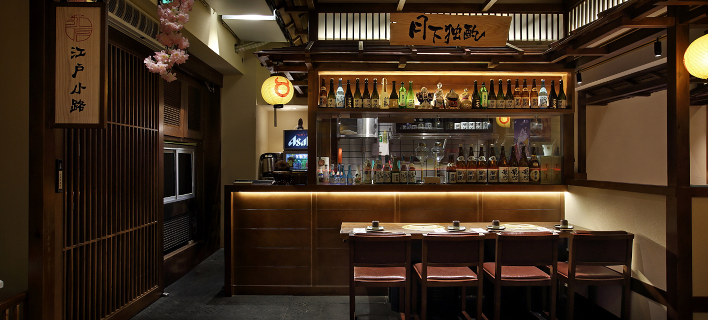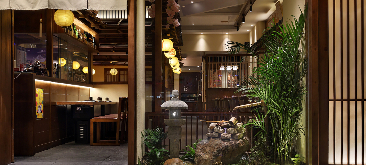 仿古建筑的門頭設(shè)計(jì),讓人停駐門外,便能感受到溫暖洋溢的日本氣息。原木色屋檐,素雅的掛簾,高懸的和風(fēng)燈籠,返墣歸真,讓人不由得卸下心事....