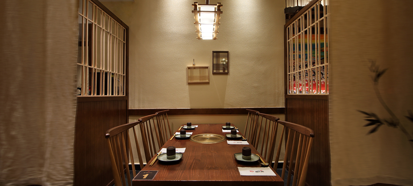 設(shè)計(jì)師巧借空間分割,用餐區(qū)布局疏密有間, 屋宇式卡座鱗次櫛比,還原日式街景起承轉(zhuǎn)合的精巧之美。格柵、暖簾隔而不斷,虛實(shí)對(duì)比,讓空間韻味悄然而生。
