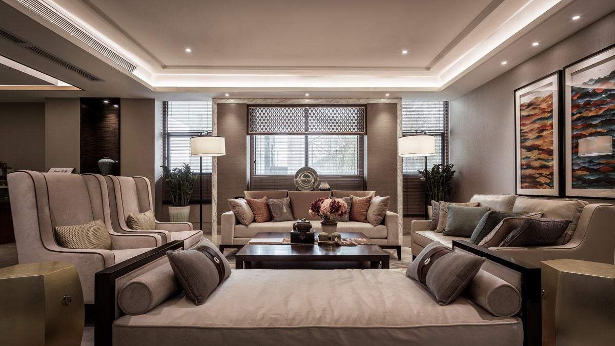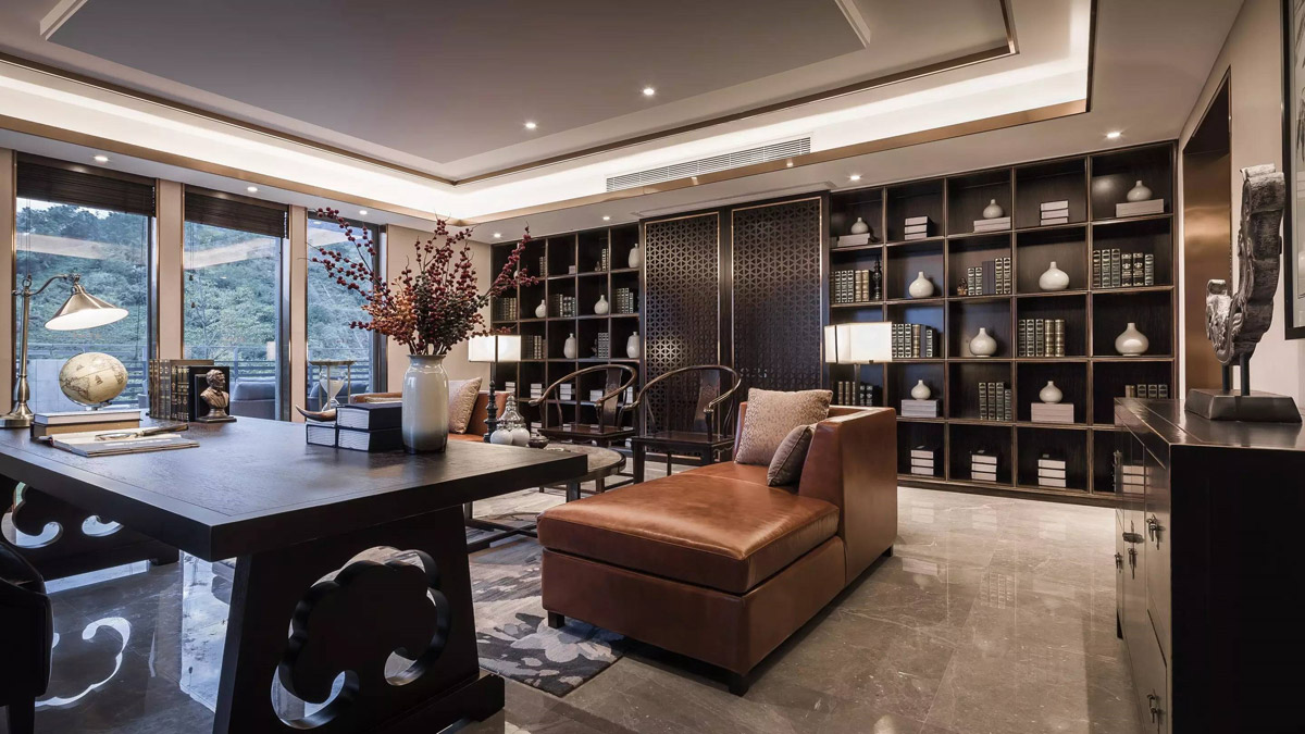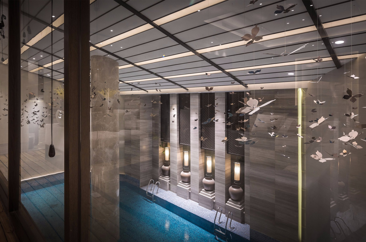 山水的抽象意念,在對比中體現出細節的推敲和尺度的精準把控,既和室外的風景遙相呼應,又為客人帶來舒適與尊貴之體驗。