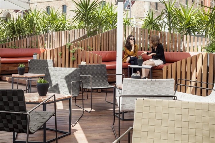 酒吧的北部是一個寬闊的露臺,被設計師賦予了海灣的概念,一邊是波光粼粼的海面,一邊是茂密的植被,階梯狀的地形創造了豐富的空間,坐在這里人們的聽著海聲,凝望遠方的地平線,放松身心。
