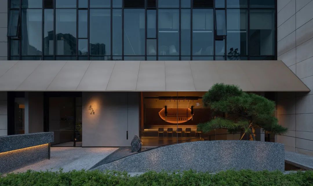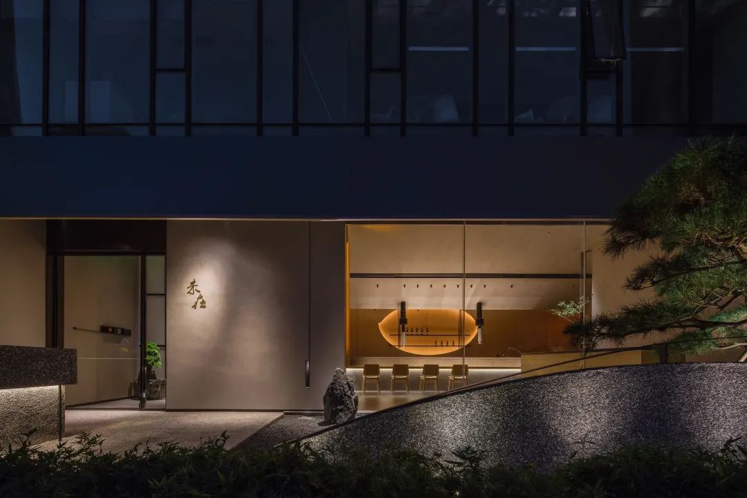 未在餐廳,座落在長沙湘江金融新區,偏居一隅。四圍被現代化的摩登玻璃建筑與快速的車流所包裹。現代都市人一日繁忙工作后,更期待的是尋找一處心安舒適的所在,去收納整理各自的一天人生境遇。這是一家以日本懷石炭火燒為主的餐廳,我們希望在這個場所注入東方含蓄隱秘的文化特質——“大隱隱于市”,并以空間的節制安靜區隔周邊的喧囂繁華,釋放內心的壓力。