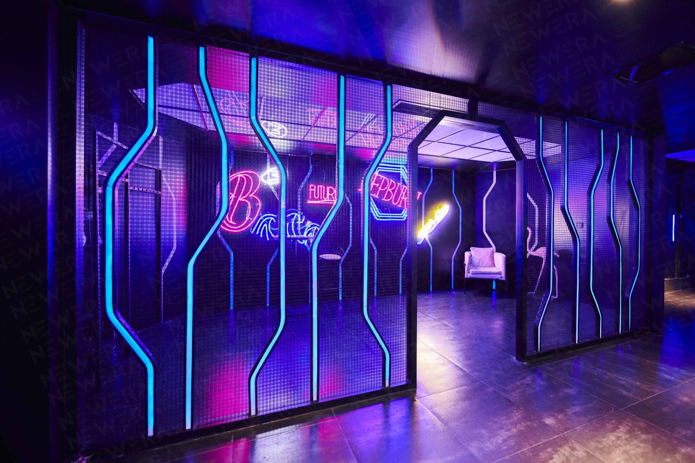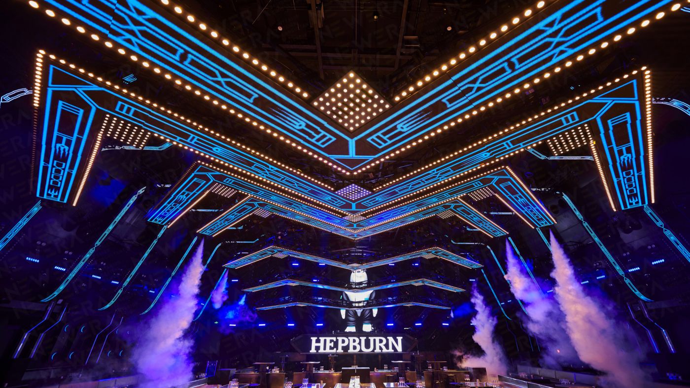成都赫本延續了廣州、武漢赫本的太空科技感、未來感和先鋒理念。設計師基于對流行趨勢和顧客心理的把握,再次以未來科技的手法來增強延展與用戶的互動感,讓消費者體驗切實感受“機能風未來”的魅力,注入更多科幻的視覺元素與更奇妙的聽覺體驗。融合科技與未來的娛樂空間,一改往日的娛樂模式。