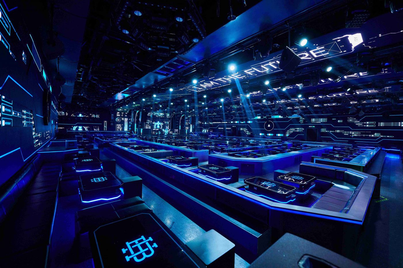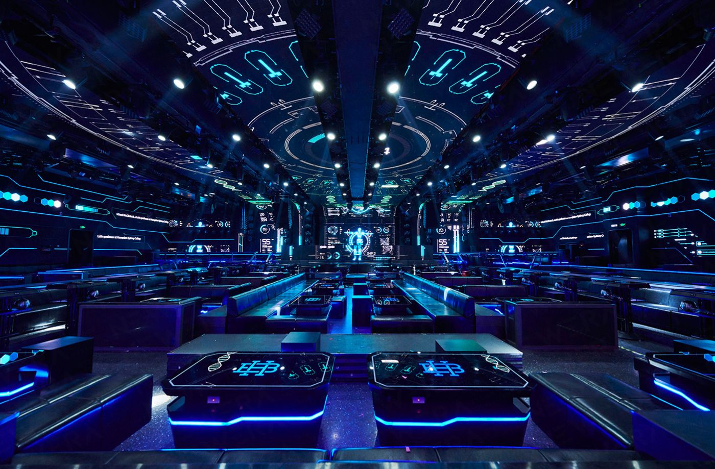 穿過前廳,就是整個項目占比最大的區域——party區。900㎡的超大空間,人性化的空間設計理念結合無障礙技術,空間通透,視野開闊,便于交流互動。圓潤的角度襯托出穿越時空的錯覺。指引著Raver到達音樂圣地的彼岸。超大的未來科技感派對空間,人性化的設計理念體現了無障礙技術。無論你站在那個角度,視野都能輕松貫徹全場。