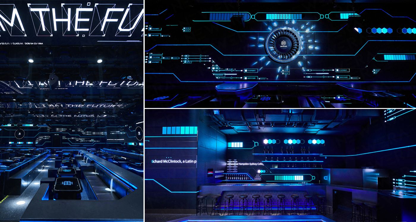 科技的發展不僅改變人們的出行方式、時空觀念,美學觀念隨著發生巨大改變。這就使得娛樂產業在科技發展的基礎上得到轉型和提升的空間,一方面是消費群體嘗試全新消費體驗,另一方面是娛樂產業投資方的商業價值正在迅速裂變。武漢赫本就是在此大環境下的一個成功案例。設計師致力于用科技和人文武裝現代娛樂空間,讓消費者獲得與眾不同的感官沖擊。