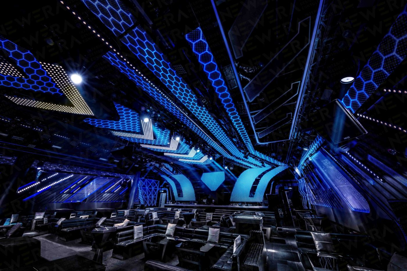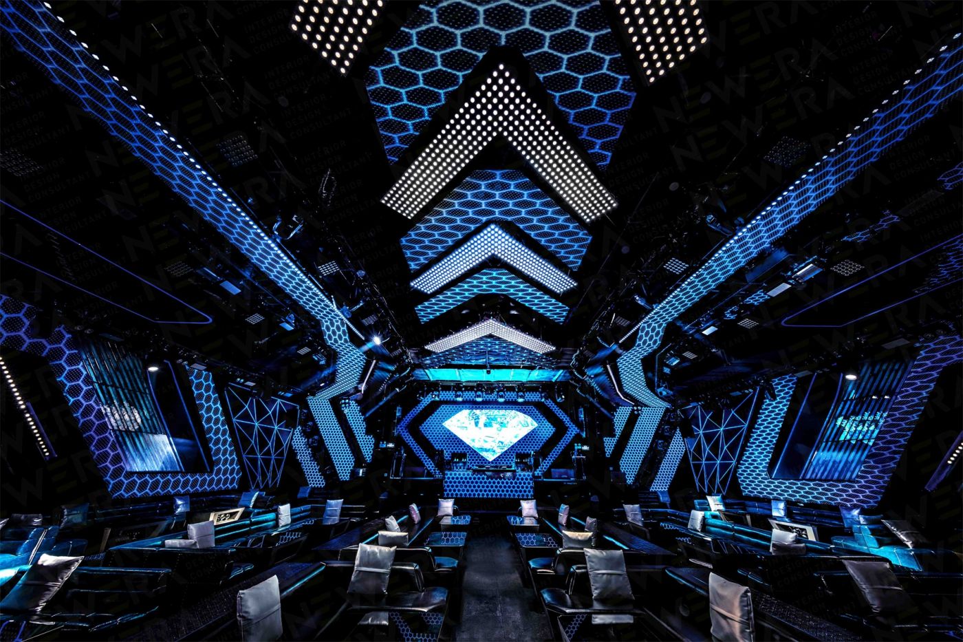 本案的最大特點(diǎn)是用大量的冷光和線條把鉆石稀缺、高貴的形象和大眾娛樂聯(lián)系到一起,營造整體自由跨界的氛圍。以鉆石為主形象,鉆石“光芒“為線條,把DIAMOND 的墻壁和天花連成一體,多面形墻壁的邊緣用昂貴材質(zhì)包裹,讓人們能感受到置身在“鉆石”的奢華當(dāng)中。