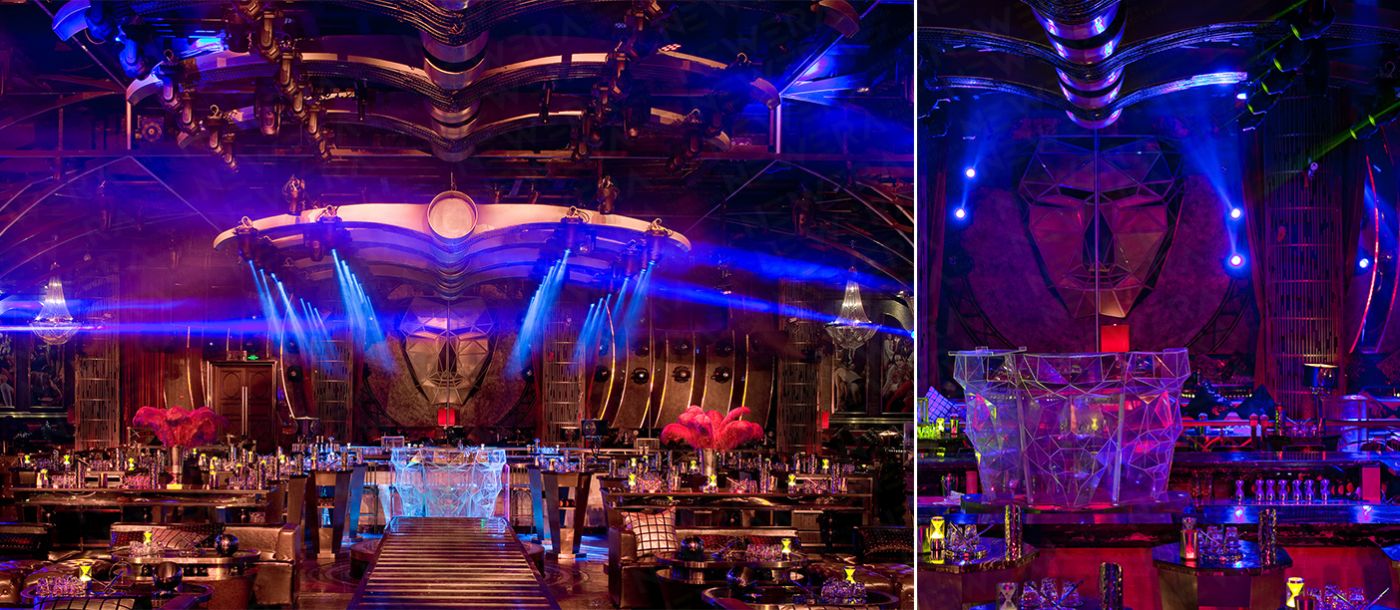 大廳空間寬緊有度的圍合式布局,帶來個性化的娛樂享受。點、線、面的聚集與離散組成不同的空間,燈條的巧妙運用實現(xiàn)空間的破局。