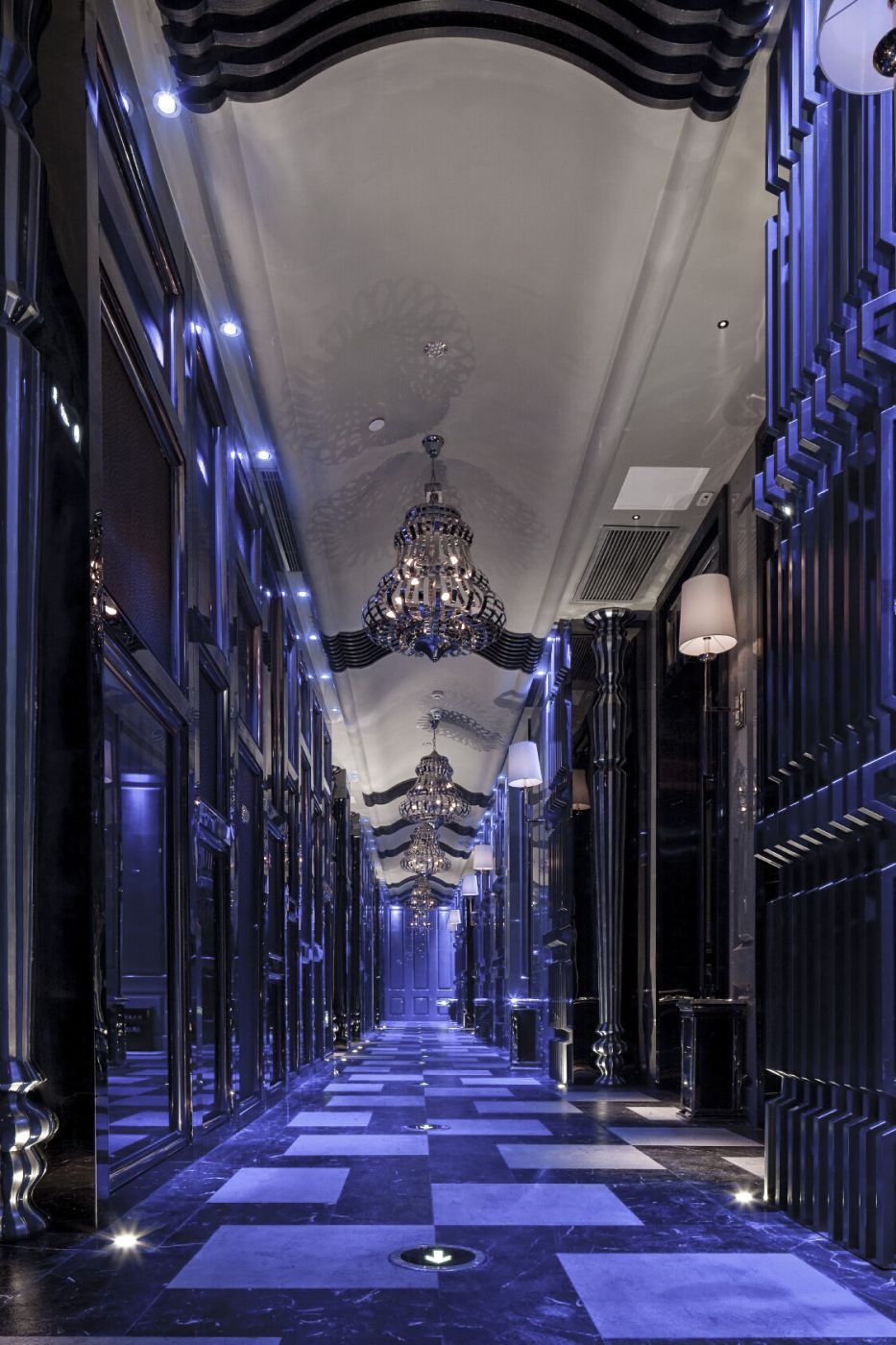 亮麗剔透的琉璃金與藍色的光影搭配,運用光的層次,通過透射、反射、折射、吸收等方式共同打造空間。