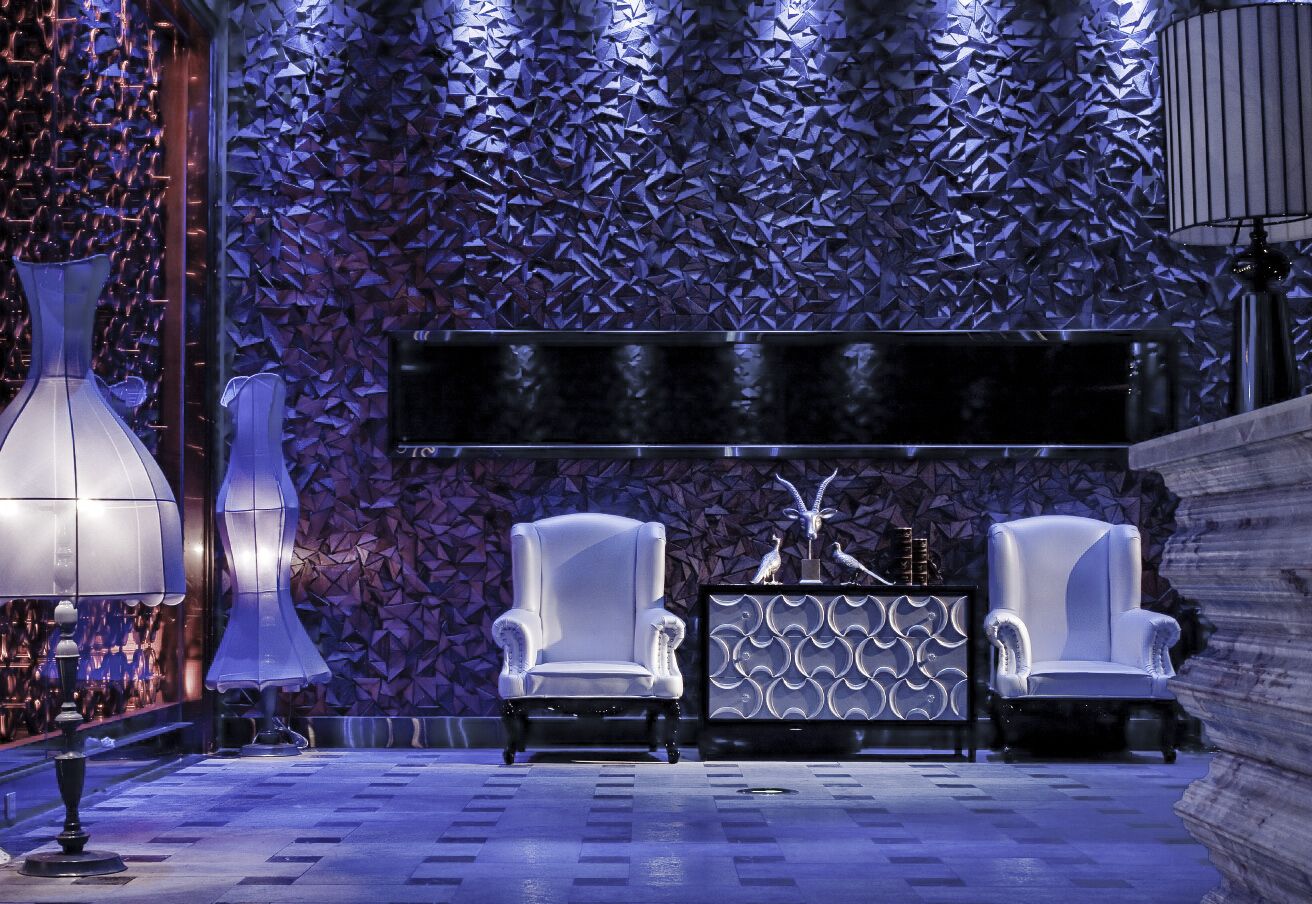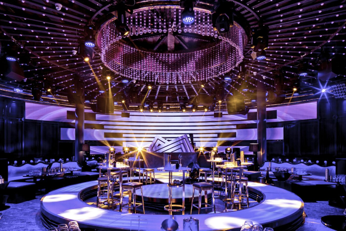 設計師利用燈光技術營造明與暗的對比,創造一種刺激,迷幻之感。通過立面浮動領舞臺打造多變空間,而純粹的用色凸顯奇異的未來派室內布置,給人一種極致炫目的愉悅感覺。