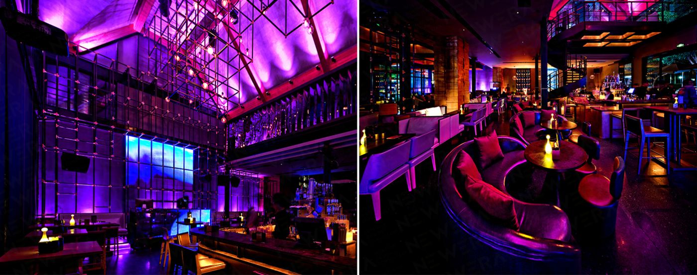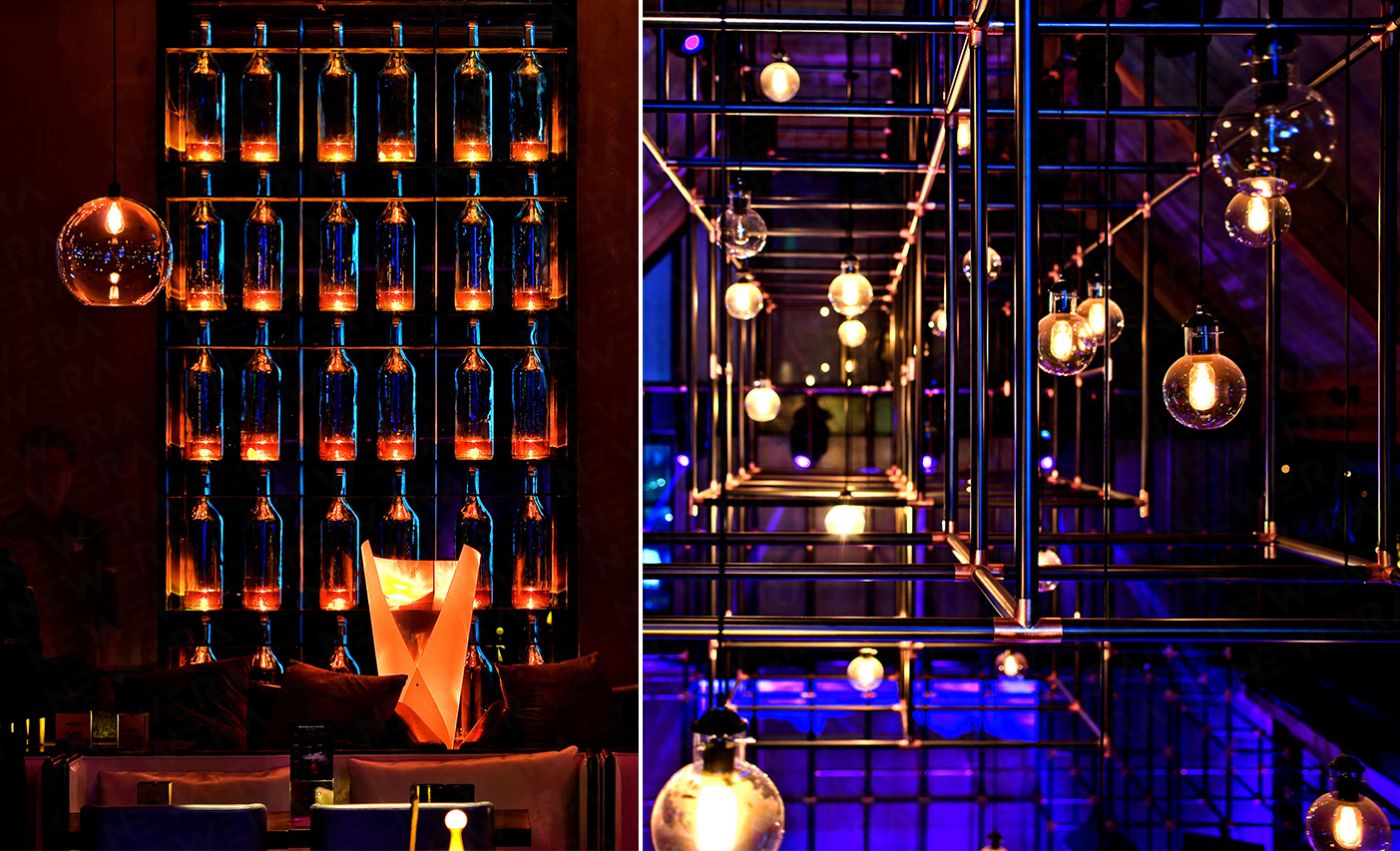 在布局上,設計師淡化了室內外的界限,軟裝燈飾也是Mojo的一大特色,本著“少即是多”的原則,空間內并沒有五彩斑斕的燈光,而是在沉著的燈光中挑了幾處做效果,加上晶瑩剔透的玻璃質感燈飾,既大氣又時髦,與家具、空間氣質配合,營造出國際大牌范兒。