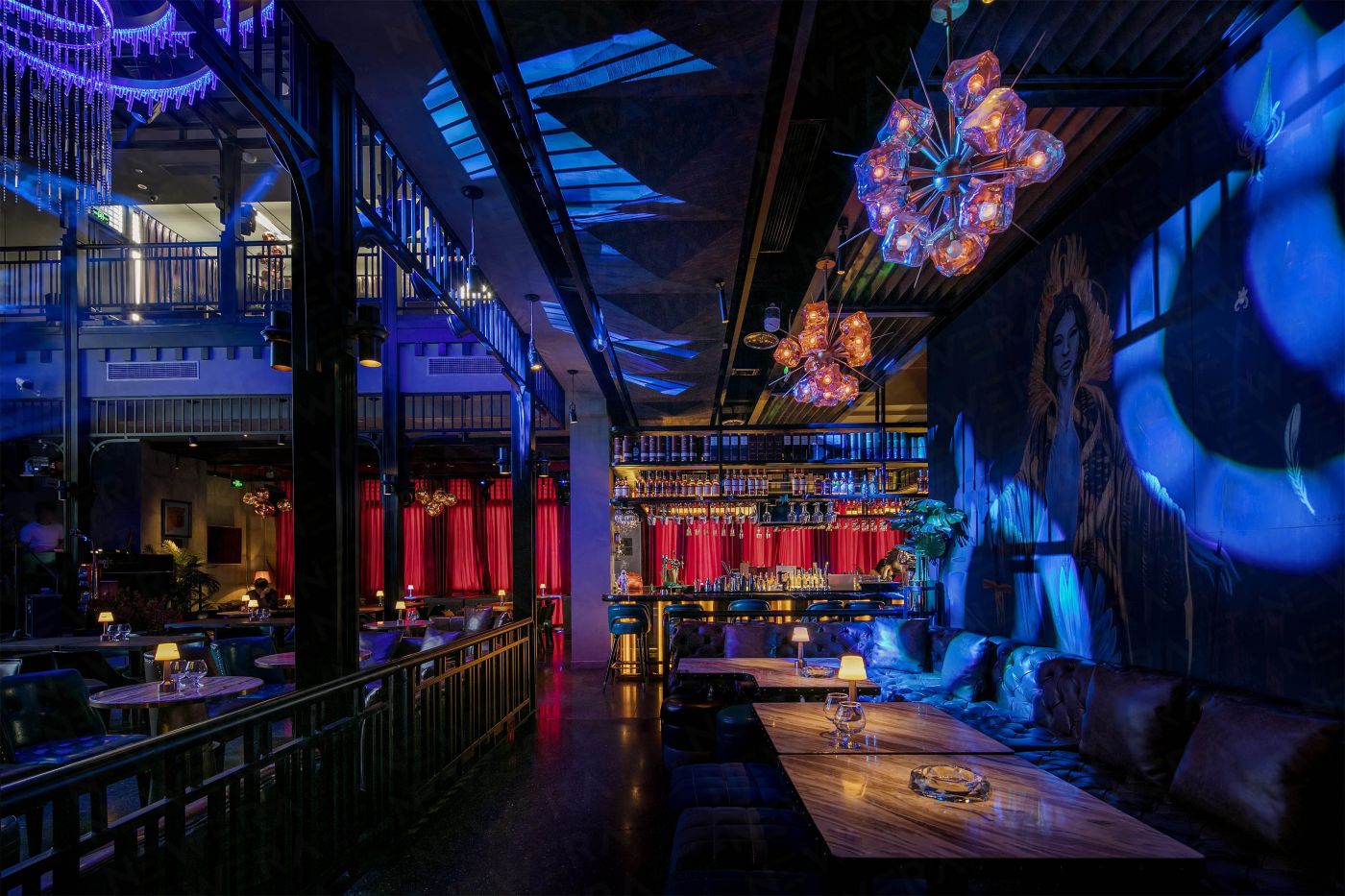 由貝帝擔(dān)綱電音酒吧設(shè)計(jì)的酒吧項(xiàng)目——MOJO與蘇州中心一同矗立于全國(guó)唯一商務(wù)旅游特質(zhì)的國(guó)家5A級(jí)旅游景區(qū)——金雞湖畔,連接著蘇州的古典與現(xiàn)代。自項(xiàng)目設(shè)計(jì)伊始,新冶組設(shè)計(jì)團(tuán)隊(duì)便冀望在這個(gè)充滿文化氣息的城市,打造一個(gè)全新的“中式Artdeco”酒吧,故通過(guò)前期對(duì)當(dāng)?shù)匚幕尘凹笆袌?chǎng)需求的深入解析,為MOJO提出一個(gè)從工業(yè)主義派生出來(lái)的概念——“殖民工業(yè)風(fēng)”,并將LOUNGE、 LIVE HOUSE、 PARTY文化融匯于此,衍生客制化的專屬魅力。