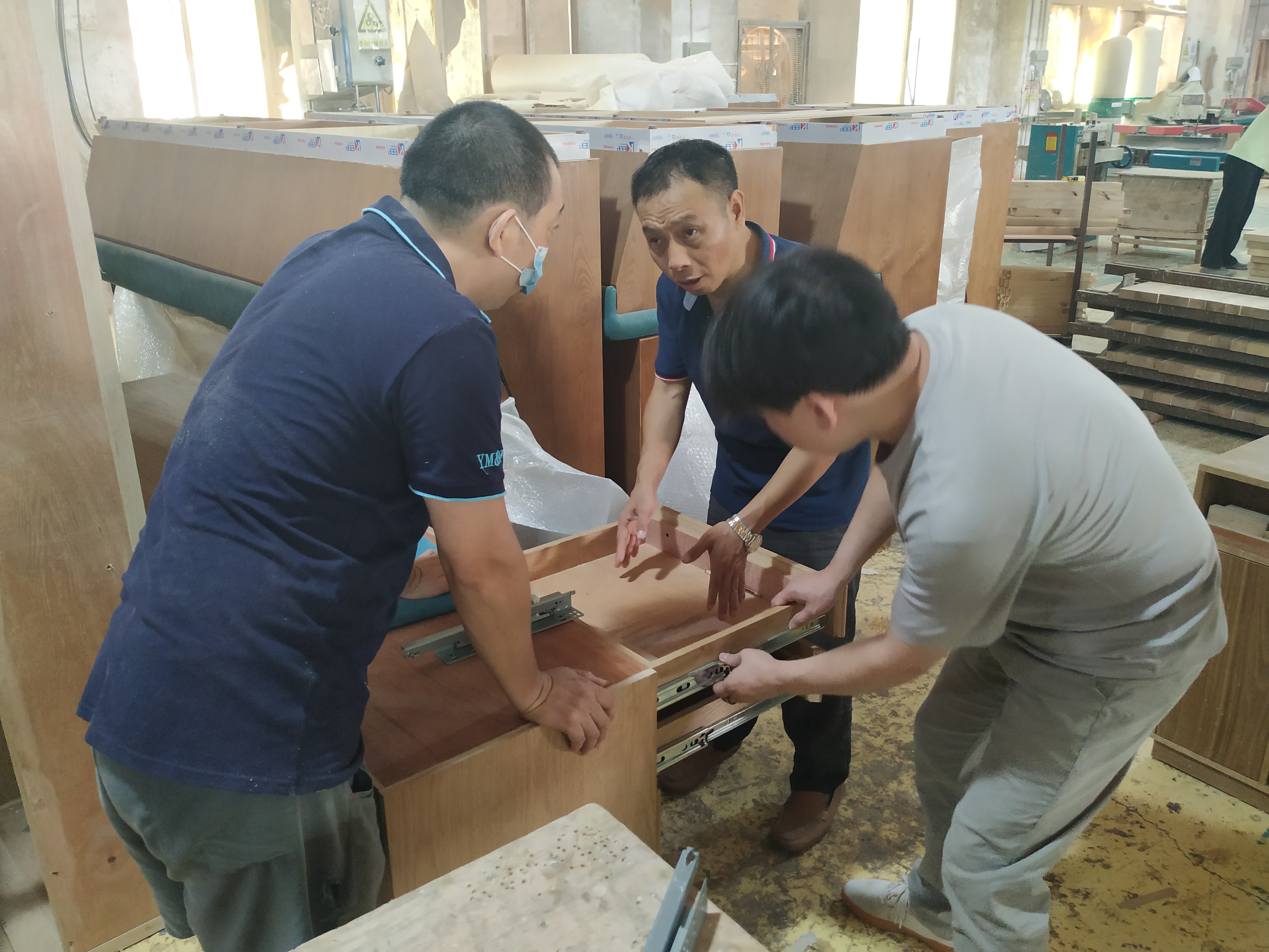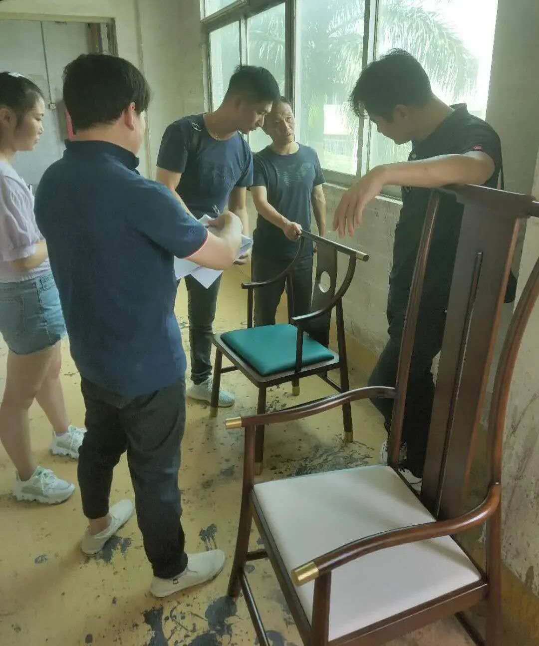 圖:貝帝設計團隊與魚界餐飲公司團隊一起檢測家具質量,優化家具工藝