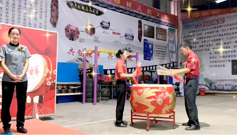 圖:每次與餐飲企業等客戶簽訂合同后,貝帝小伙伴都會擊鼓慶賀